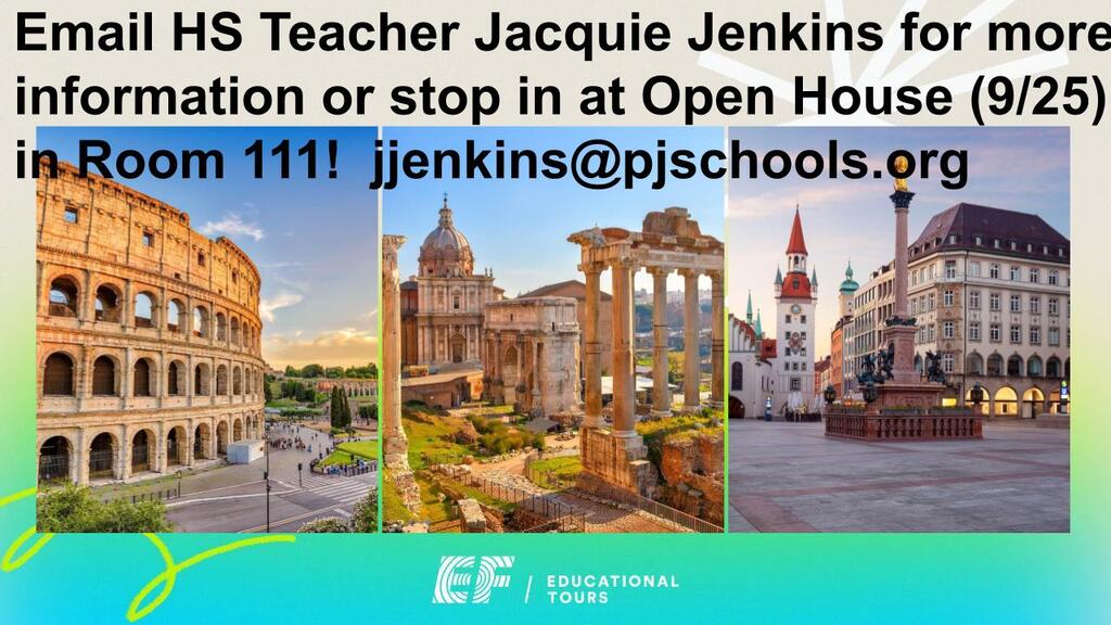 Mrs. Jenkins is going to Italy & Germany in the Summer of 2028, and your student is invited!