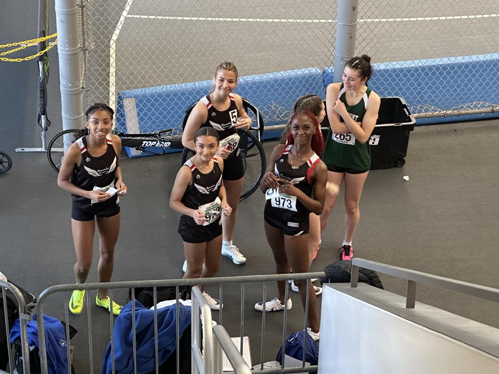 The Varsity Indoor track girls relay team of Kaitlyn Batzel, Kendra Johnson, Marlee Prespare, and Makenna Williams did a great job at the indoor state championships. They finished 16th in the state. This team has accomplished a number of firsts, including being the first Port Jervis relay team to make it to the indoor state championships and indoor nationals despite being a new relay team consisting of 2 freshmen, 1 junior, and 1 8th grader who were not used to running with each other. We congratulate them on their accomplishments!
