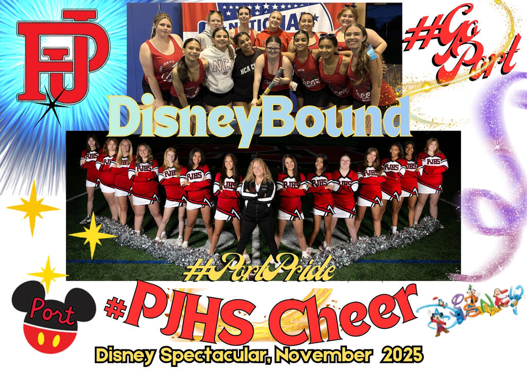 #Shoutout & best of luck to Coach Chris Addy and the PJHS senior cheerleaders who qualified to compete in the Varsity Spirit Spectacular at Disney this weekend! Coach Addy has #supPORTed these young ladies and men and our cheer team for many years--and this is a wonderful opPORTunity for them.
