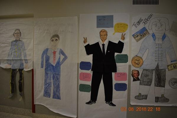 March 9th, 2018 - ASK School, Port Jervis, NY - The second graders at Anna S. Kuhl were tasked with creating full size presidents for inclusion in a "Hall of Presidents." They have been working on learning about their assigned president as well as incorporating different aspects of research and technology to go along with their project.description text.