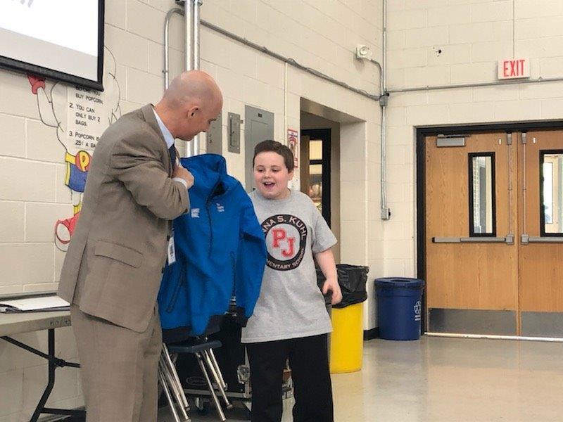 Fourth grader, Ian Thompson, has always loved weather and wants to be a meteorologist when he grows up. Ian started out the school year doing the Weekend Weather Report over the announcements for all staff and students. Ian had an idea to create a “Weather Week” as a way to thank meteorologists for saving lives. His goal was to have students learn and become excited about weather, as well as to inspire other kids to become meteorologists. In order to get his plan into motion, Ian created an outline, wrote up a proposal, and requested a meeting with ASK’s principal, Brett Cancredi. Once the proposal was approved, he began meeting before school, as well as during his lunch and recess. Ian’s ideas and enthusiasm were shared with The Weather Channel who recognized his passion and spirit and, in turn, wanted to support him. They sent Ian an official Weather Channel field jacket, a t-shirt, and an autographed photograph. On Friday, May 10th, Ian and his class had the opportunity to skype with Reynolds Wolf, a meteorologist from the Weather Channel. The students got to speak with Mr. Wolf, ask questions, and got first-hand footage of the current flooding in Houston, Texas. As an exciting end to Weather Week, the Weather Channel aired a montage of photos from Weather Week that was aired on May 12th. We are so proud of Ian and hope that Weather Week will be an annual event at ASK !