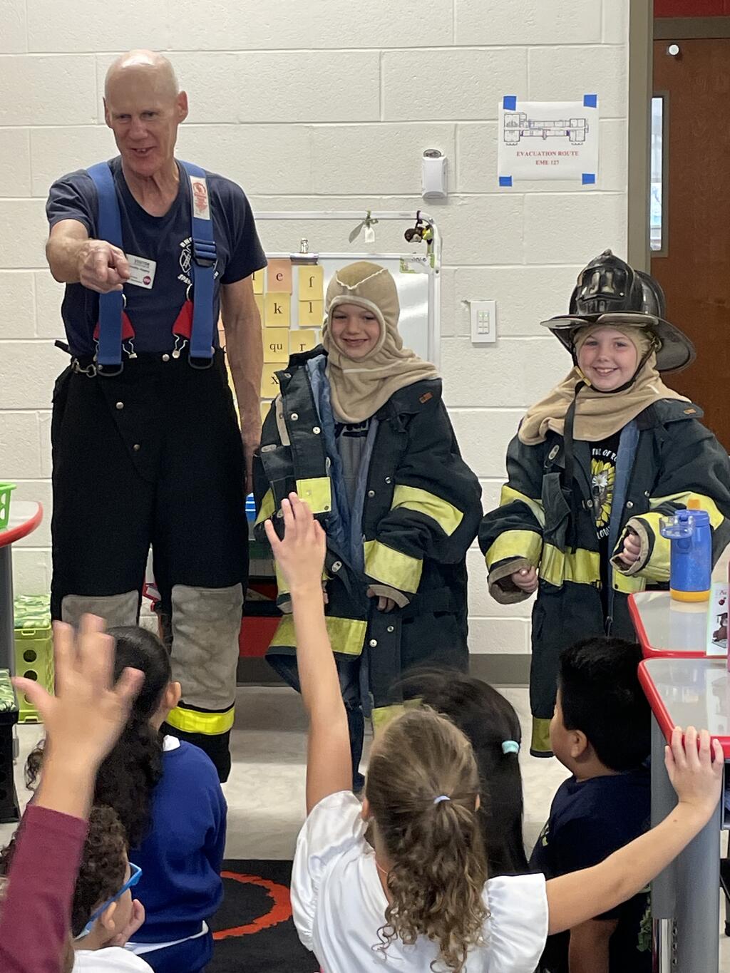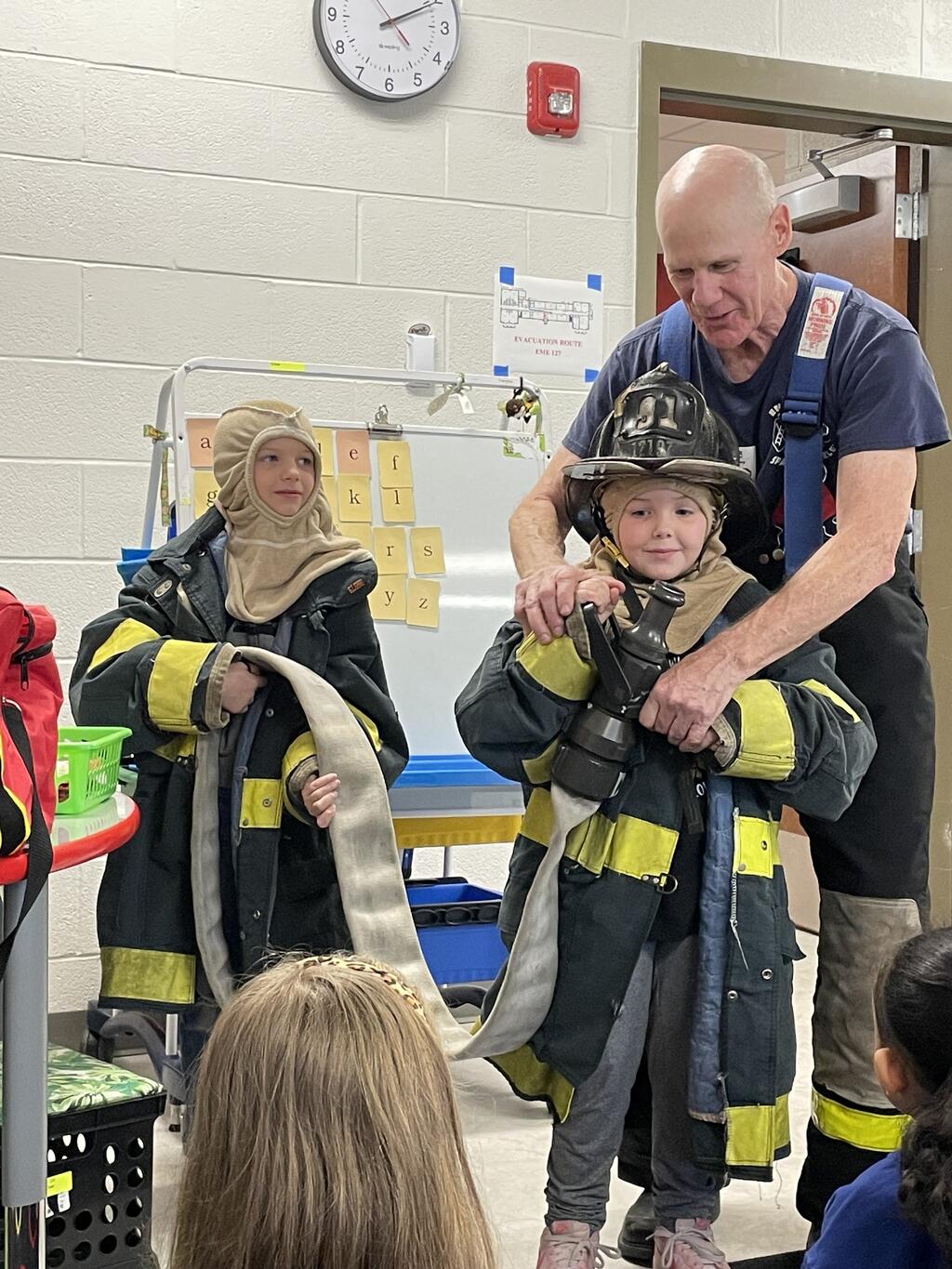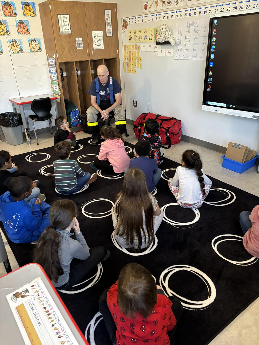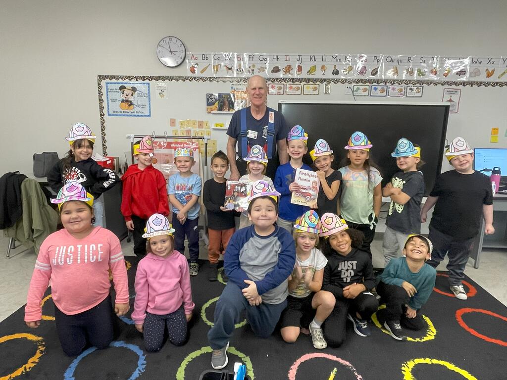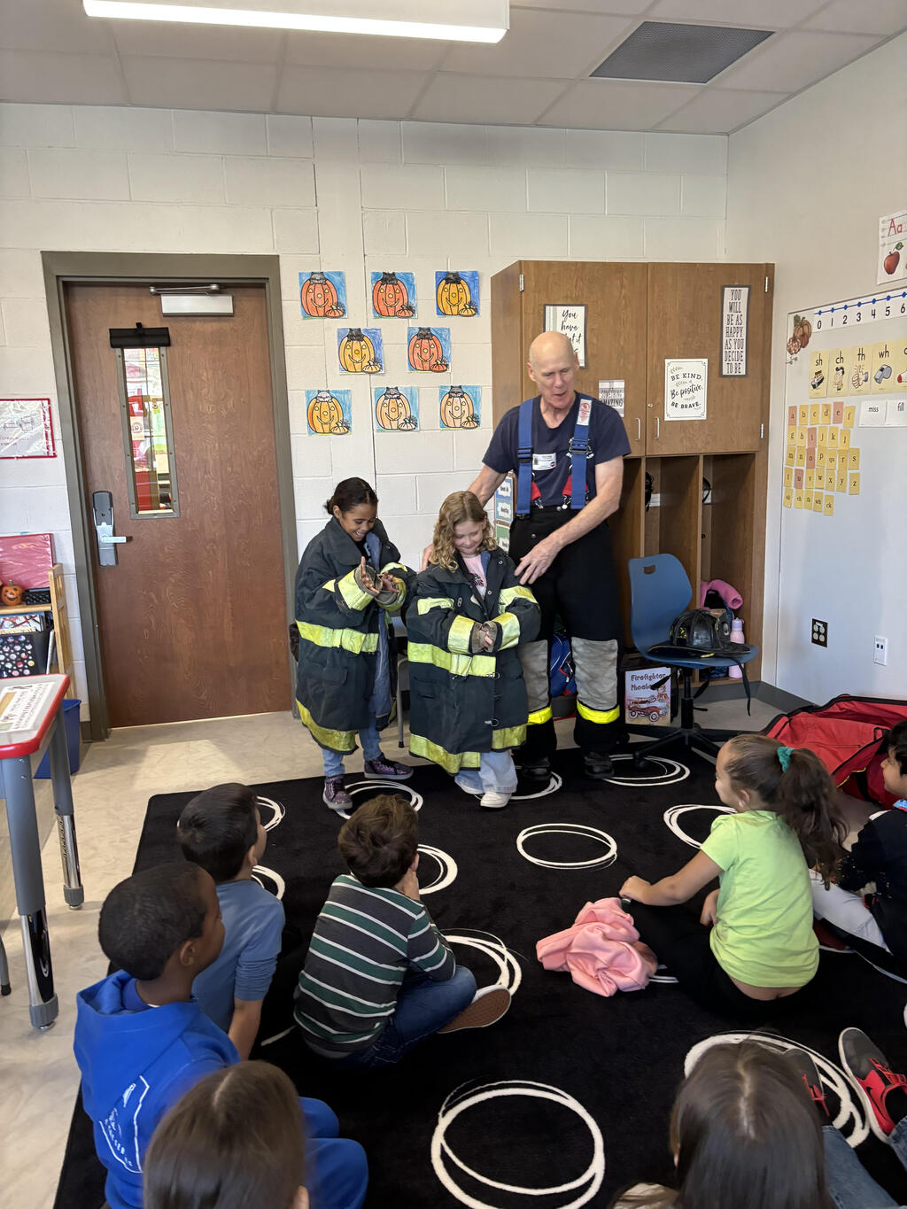 Mr. Tim Hoppey, author and retired firefighter, visited each first-grade classroom at East Main Elementary on Friday, October 25th. He spoke to the students about the process of writing and editing a book and how he gets his ideas for stories. He also talked about the clothing firefighters must wear to be safe and the process of using a hose to put out a fire. Several students had the opportunity to dress up like a firefighter and model putting out a fire. The students really enjoyed their visit from Mr. Hoppey!