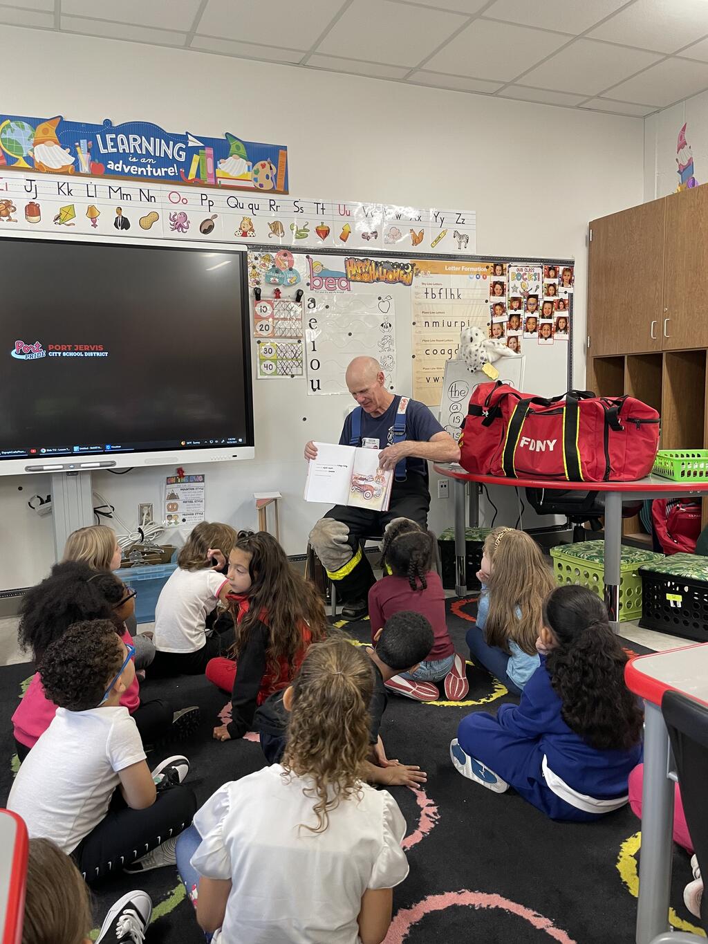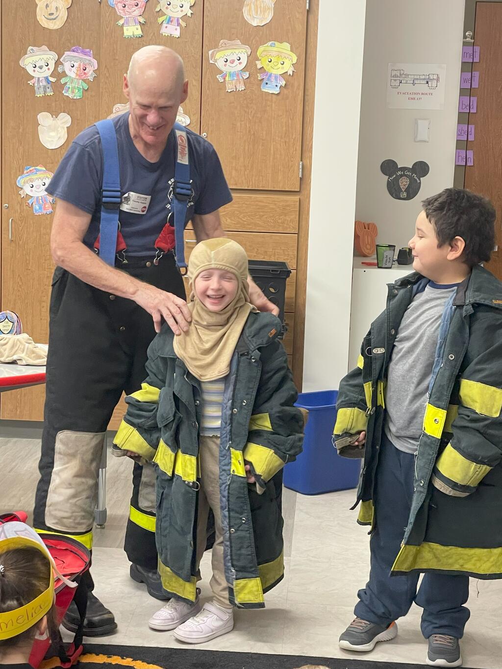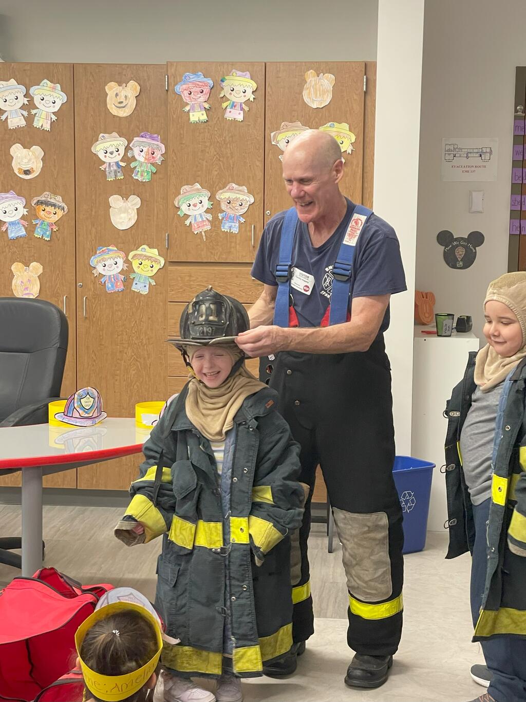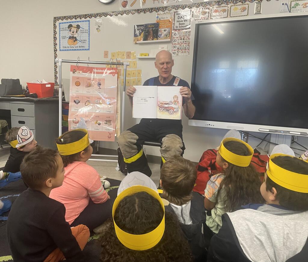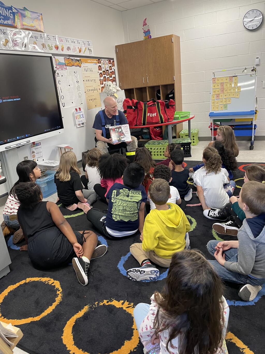 Mr. Tim Hoppey, author and retired firefighter, visited each first-grade classroom at East Main Elementary on Friday, October 25th. He spoke to the students about the process of writing and editing a book and how he gets his ideas for stories. He also talked about the clothing firefighters must wear to be safe and the process of using a hose to put out a fire. Several students had the opportunity to dress up like a firefighter and model putting out a fire. The students really enjoyed their visit from Mr. Hoppey!