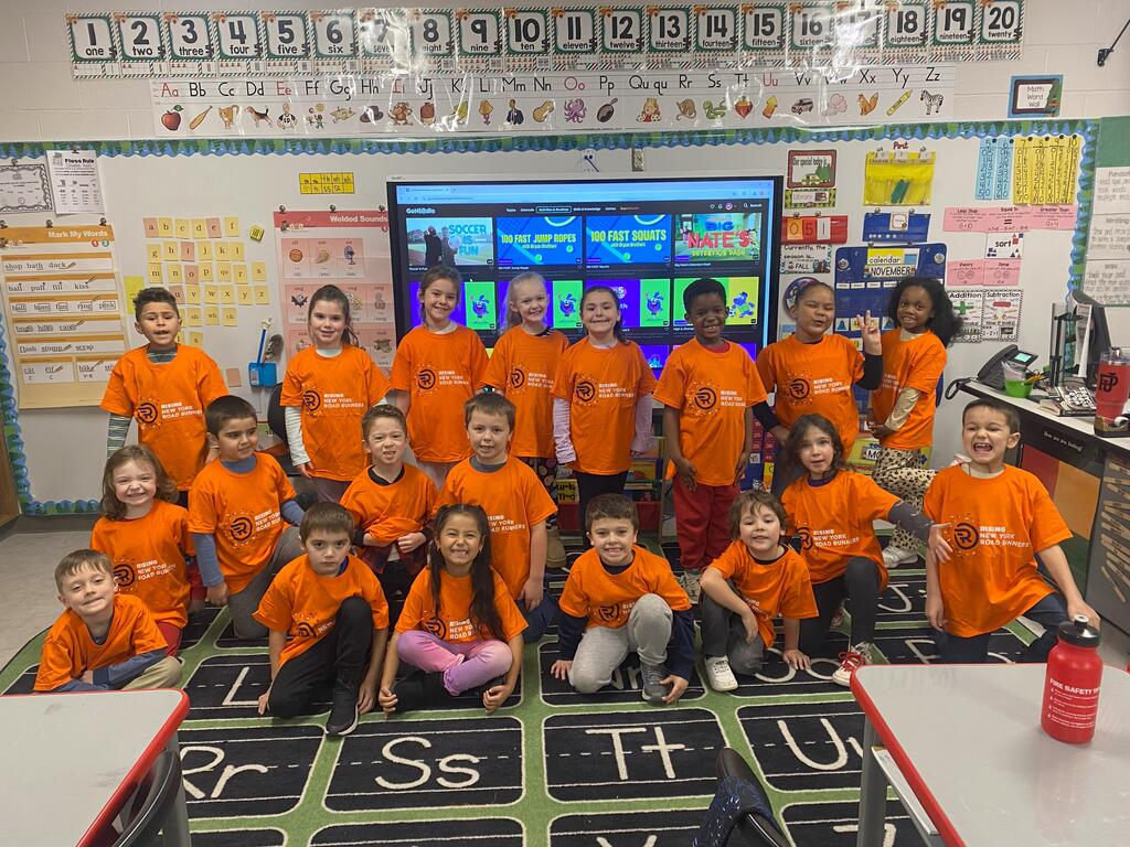 The teachers at East Main do just that with brain breaks, yoga, physical activities in the classroom, and outdoor recess, and as an incentive the NYRR organization supplies each child with a free T-shirt and other prizes throughout the year.
