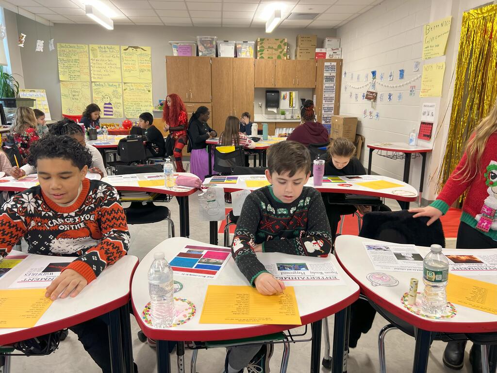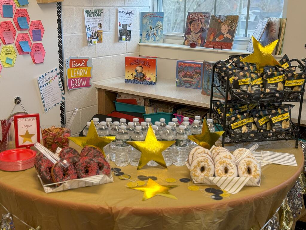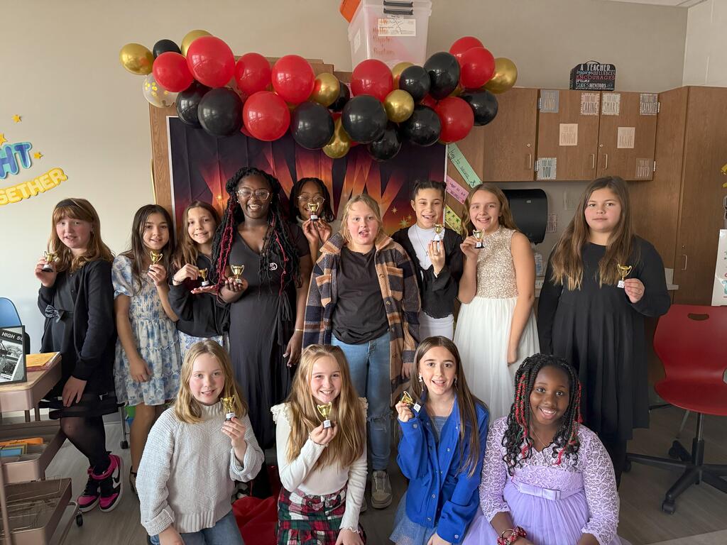 The Fifth Graders at East Main Elementary enjoyed a red carpet-themed Author's Celebration as a culminating activity for the recent completion of their Journalism unit. Students read each other's news stories and feature articles. The students then voted on positive writing categories for their peers. Afterward, each class enjoyed an awards ceremony and special treats for all of their hard work! A great time was had by all.