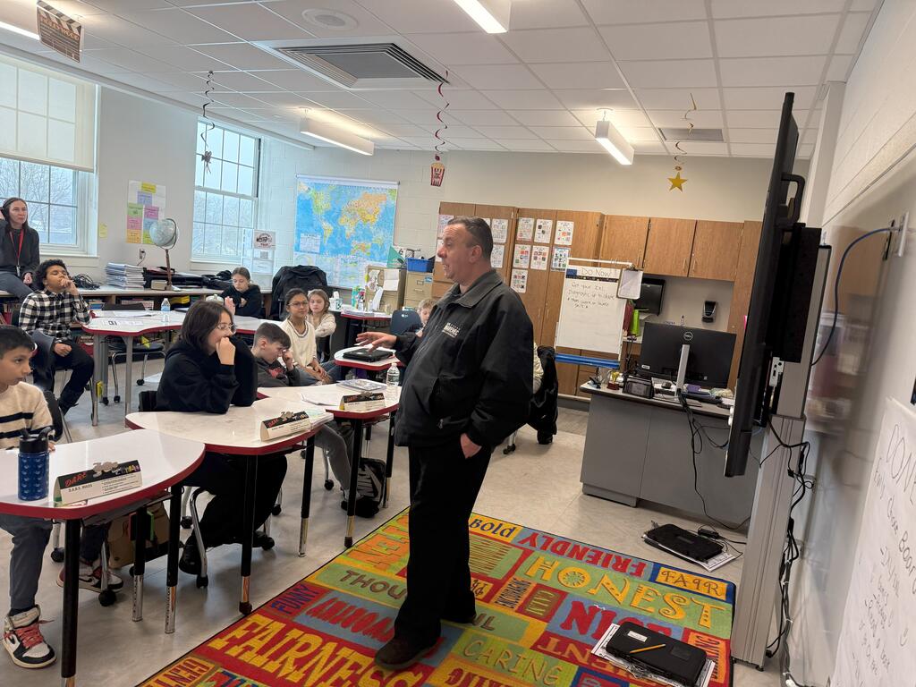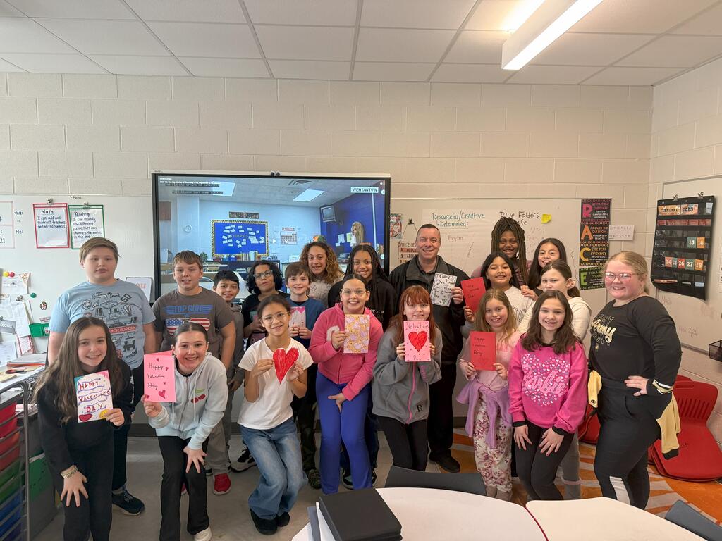 Assemblyman Karl Brabenec visited the 5th graders at East Main Elementary School to discuss how a bill becomes a law and the importance of giving back to the community. During his visit, he also collected handmade Valentines created by the students to deliver to the residents of St. Joseph's here in Port Jervis.