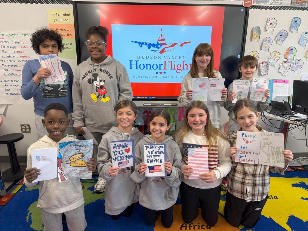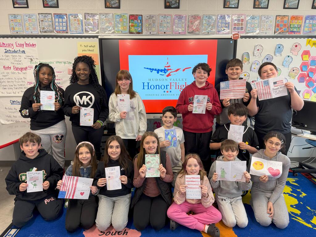 The 5th graders at East Main Elementary School created heartfelt cards to be distributed to the participants of the Hudson Valley Honor Flight held on April 12. They would like to thank former board member Flo Santini for serving as their point of contact and helping make this meaningful project possible!