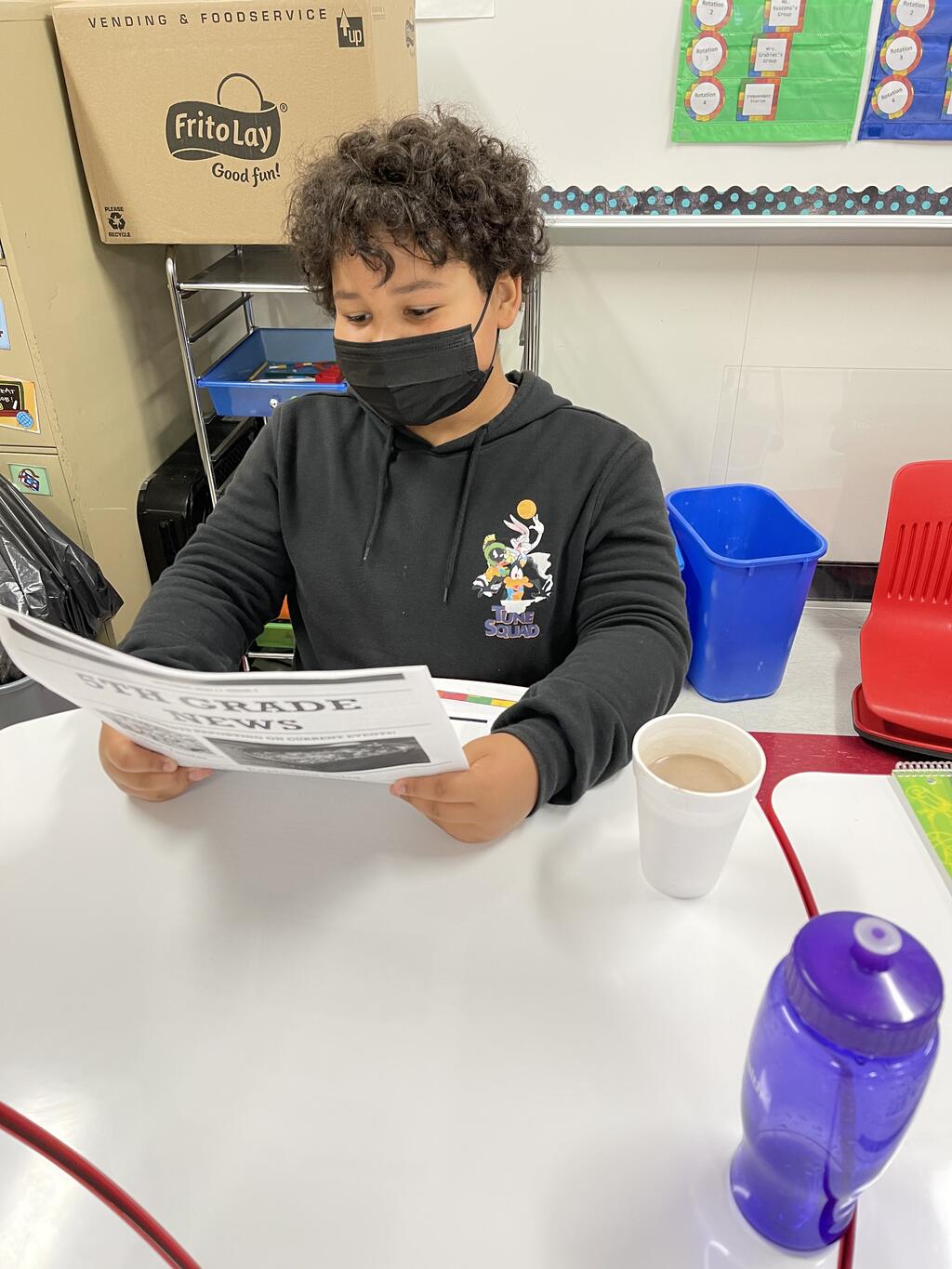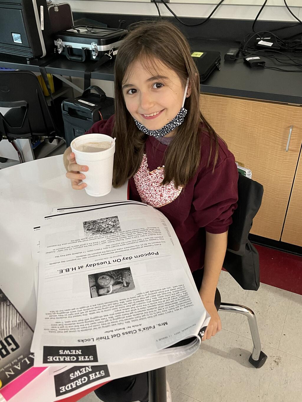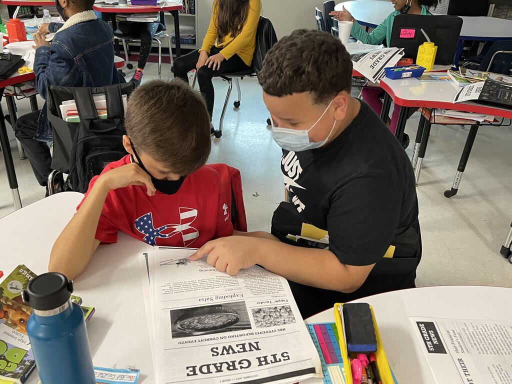5th graders at H.B.E. just finished their journalism unit where they learned how to become reporters and write news articles. Each student submitted a news article, from an event that happened recently, and all of the news reports were compiled into a grade level newspaper. Students enjoyed reading their newspapers, while sipping on hot chocolate.