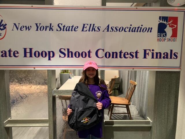 In the 8-9 year old girls’ division, Isabella Raap won 1st place becoming the 2022 Elks Hoop Shoot State Champion in her age division! Isabella drew the first shooting slot and set the tone making 7 out of 10 free throws in her first round and then hitting 10 for 15 free throws in the second round. She edged out her closest competitor by one free throw and secured the victory with a total of 17 out of 25 made baskets! Isabella will move on to the Northeast Central Regional Competition being held on March 19th in Wilkes Barre, Pennsylvania. This contest is between the State winners of New York, New Jersey, and Pennsylvania with the Northeast Central Regional Winner advancing to the National Finals being held in Chicago, Illinois on April 30th.