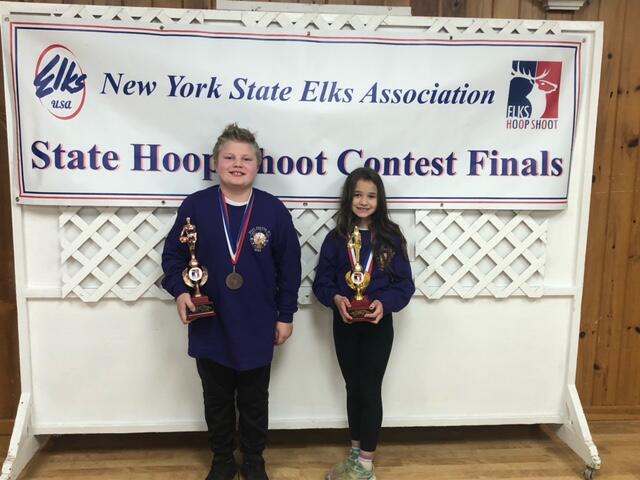 The Elks Hoop Shoot is a free throw program for youth ages 8-13 and for 50 years, it has been developing gritty kids. This year is no exception as the Port Jervis Elks Lodge #645 had two outstanding representatives, Gavin Gass and Isabella Raap, at the State contest held on March 5th in Glens Falls, New York. Gavin Gass is the son of Heather Gass, a teacher at H.B.E and Isabella Raap is a current student at H.B.E.