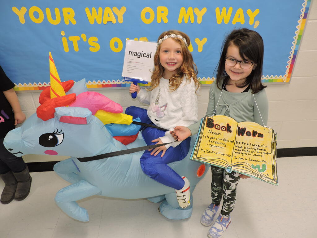 The staff and students of HBE celebrated Read Across America with a Vocabulary Parade on March 2, 2022. Our kindergarten - second-grade students, along with many teachers, chose an impressive word and created a costume that demonstrated it. They also made a sign with their word and its definition so that the parade watchers could increase their own vocabularies. What a fun way to celebrate reading!