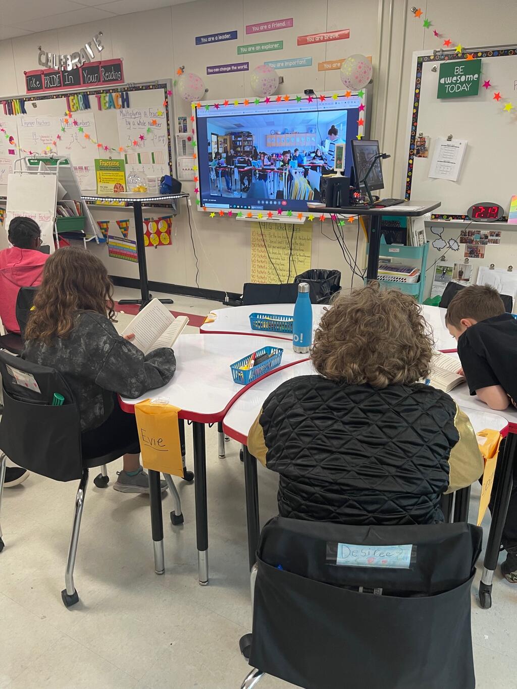 Two fourth grade classes, Mrs. Trochiano and Mrs. Gibbs' class from HBE and Mrs. Niosi's class from ASK, did a shared reading of our Ways to Make Sunshine book!