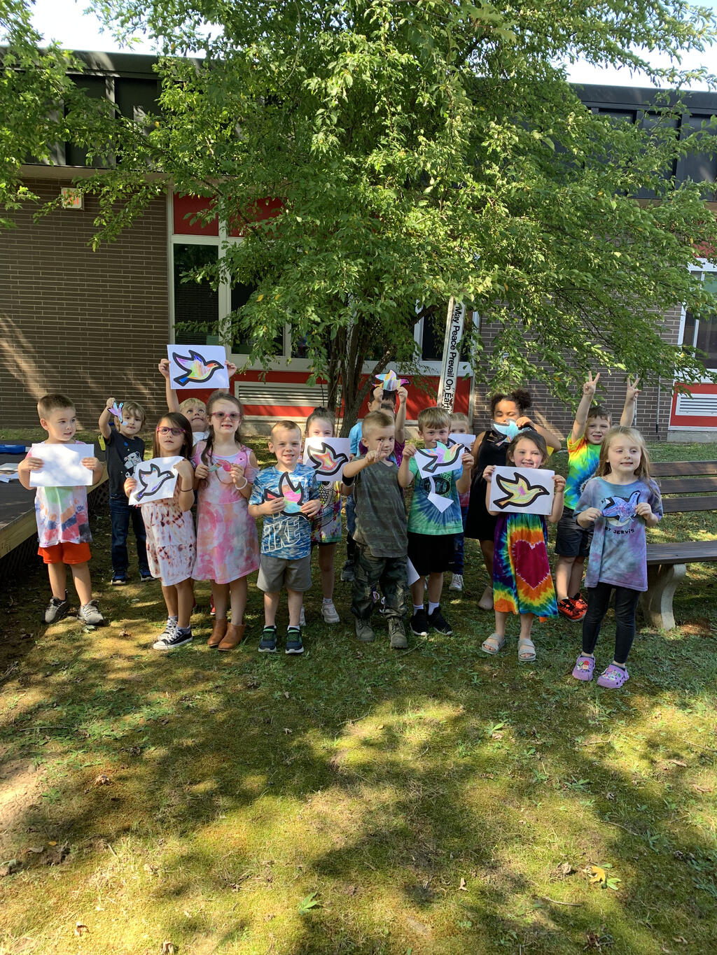 Mrs. Haight and Mrs. Sickler's class celebrate The International Day of Peace (9/21) in HBE's beautiful courtyard!