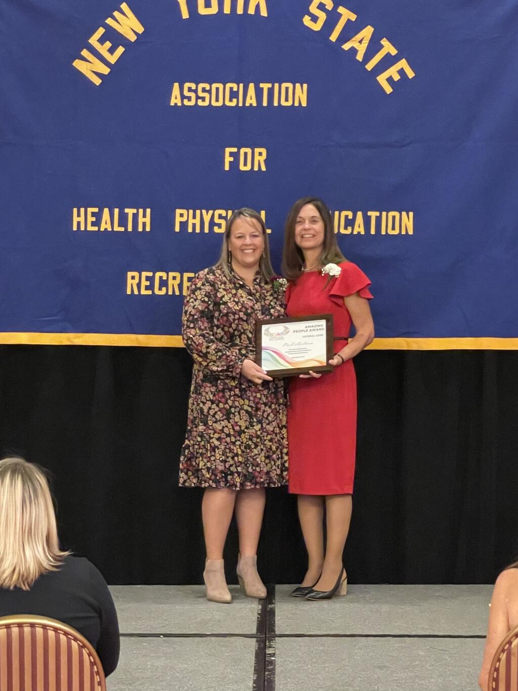 On November 17, 2022, HBE Physical Education Teacher, Nikki Hartmann, was awarded the 2022 NYS AHPERD Catskill Zone Amazing People Award. This award is given to people for excellence in teaching and overall performance in the disciplines of physical education, adapted physical education, health education, and dance education. HBE is so proud of Mrs. Hartmann!