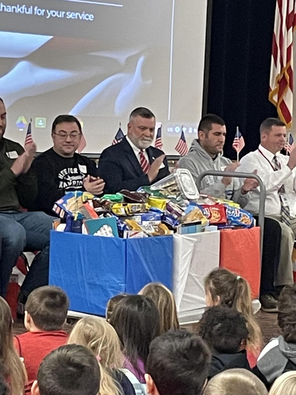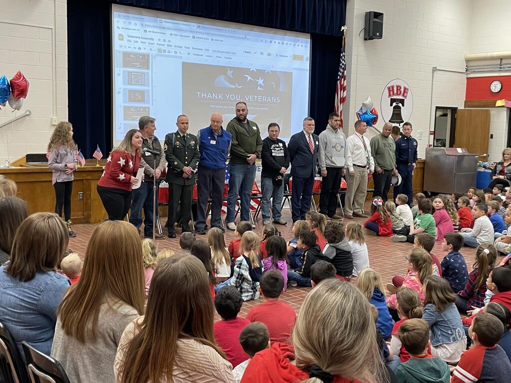 Students and staff at HBE demonstrated November's character trait, gratitude, by honoring our Veterans. Students created cards and sang patriotic songs. Thanks to the families of HBE, a very generous donation of socks, chocolates, lotions, cookies, crossword puzzles, and more was made to the Veterans Affairs of Port Jervis.