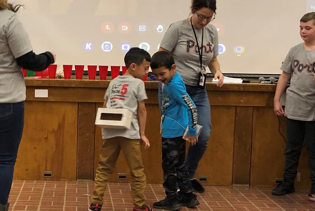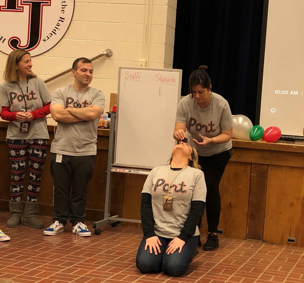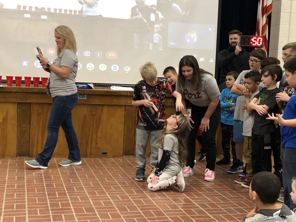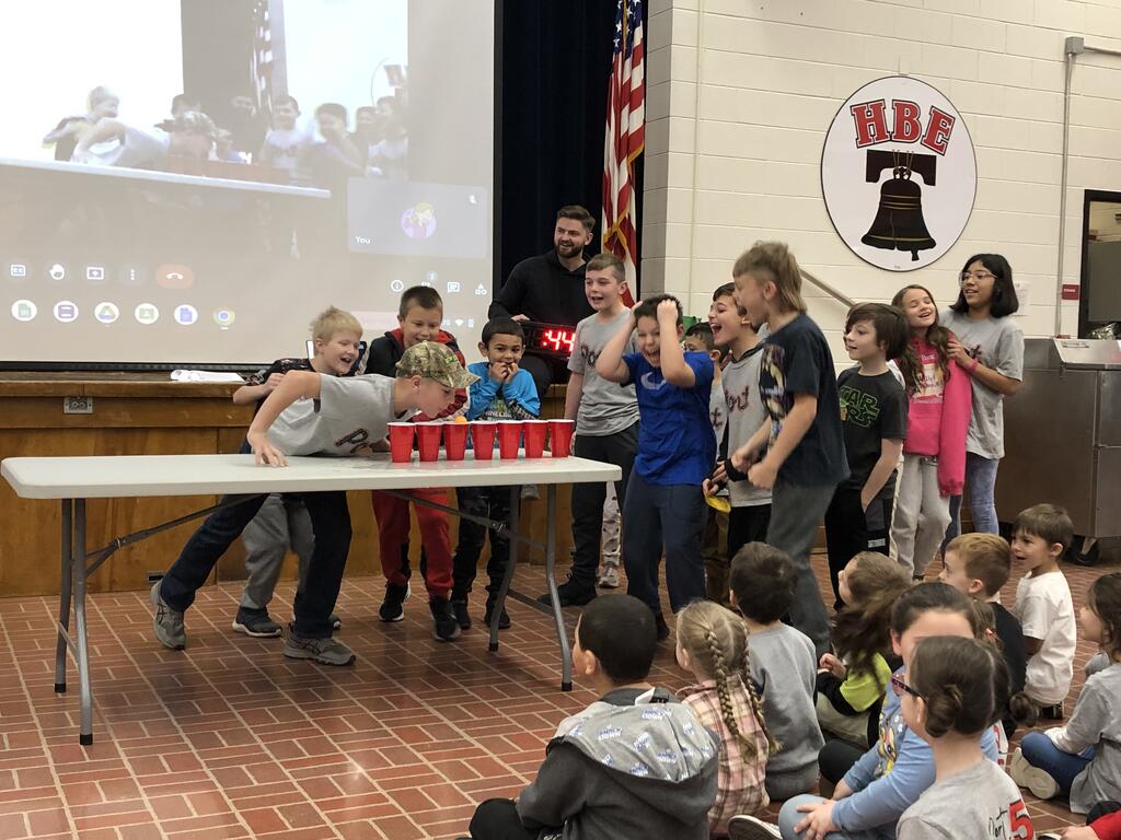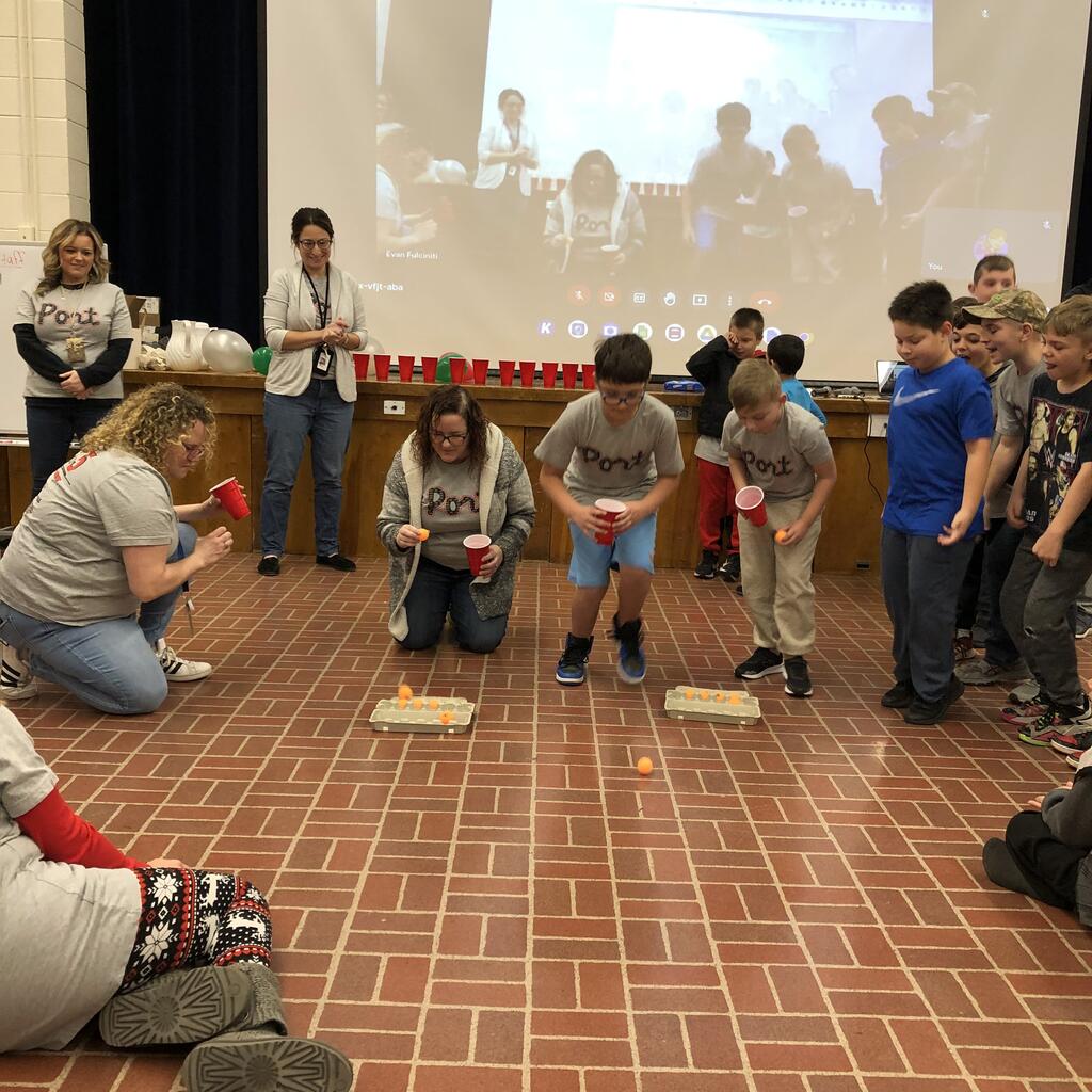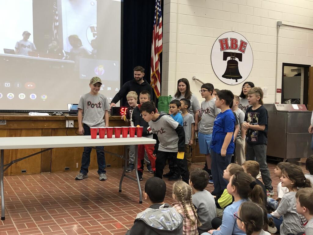 Teachers, staff, and students from HBE participated in the very first Student vs. Teacher challenge! Students had the opportunity to save 25 of the Bicentennial Bucks they earned for demonstrating Port Pride behavior and have their names entered into a drawing to participate in the challenge. 16 students were chosen at random; there were 10 minutes to win challenges and a whole lot of cheering from the entire school! The competition was fierce, but the students came up victorious! We can't wait for the next one!