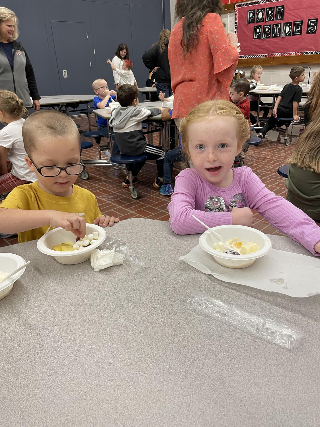 All students in Ms. Haight and Mrs. DeGrote's class, Mrs. Thiele's Class, Miss Ramos' Class & Mrs. SIckler's Class celebrated "Talk about It Thursday". The classes created a special snack called "School Friendship Salad". The students talked to each other about keeping the fun, learning, and good choices in our school and not adding any "rotten banana behaviors!"
