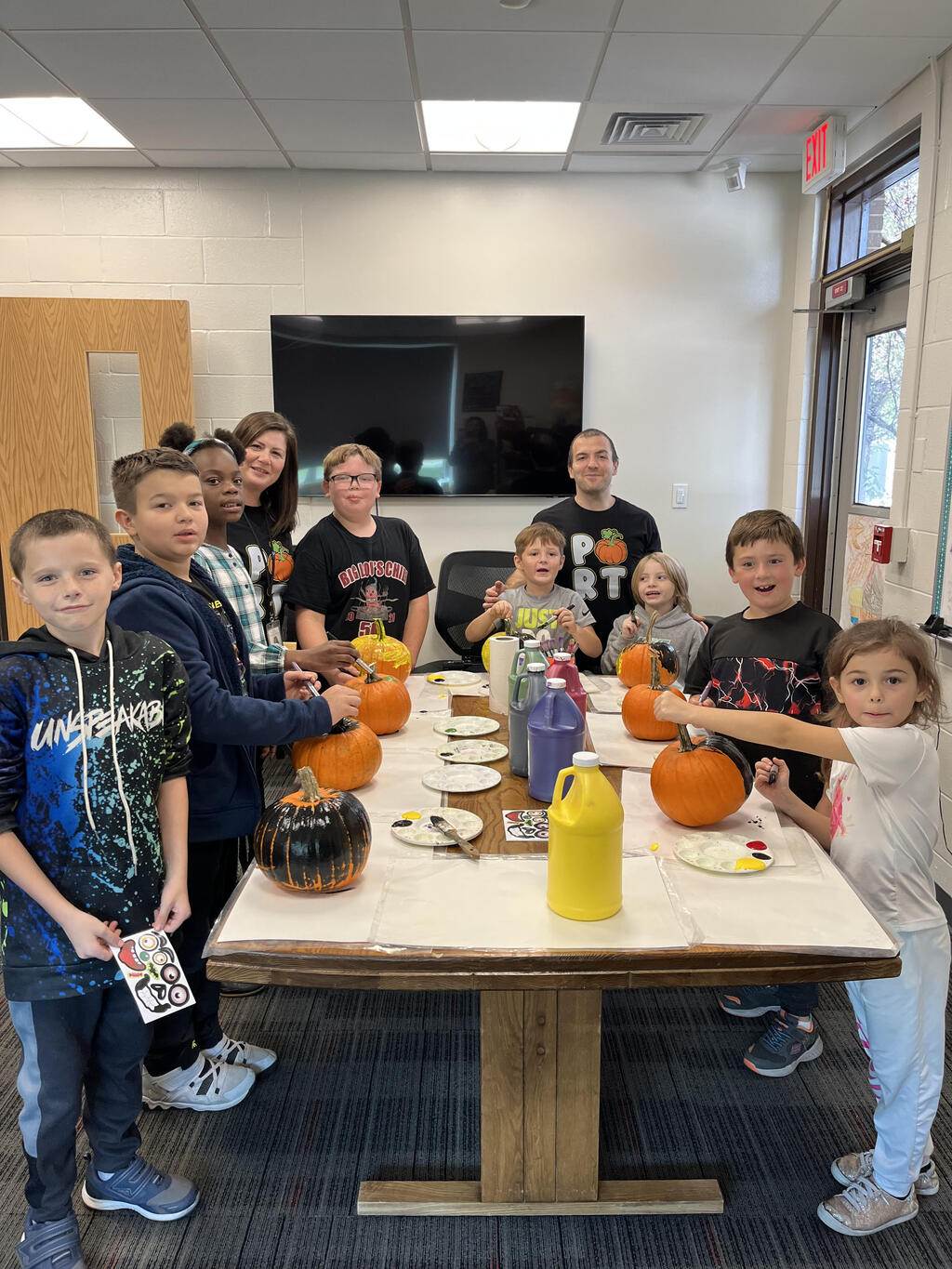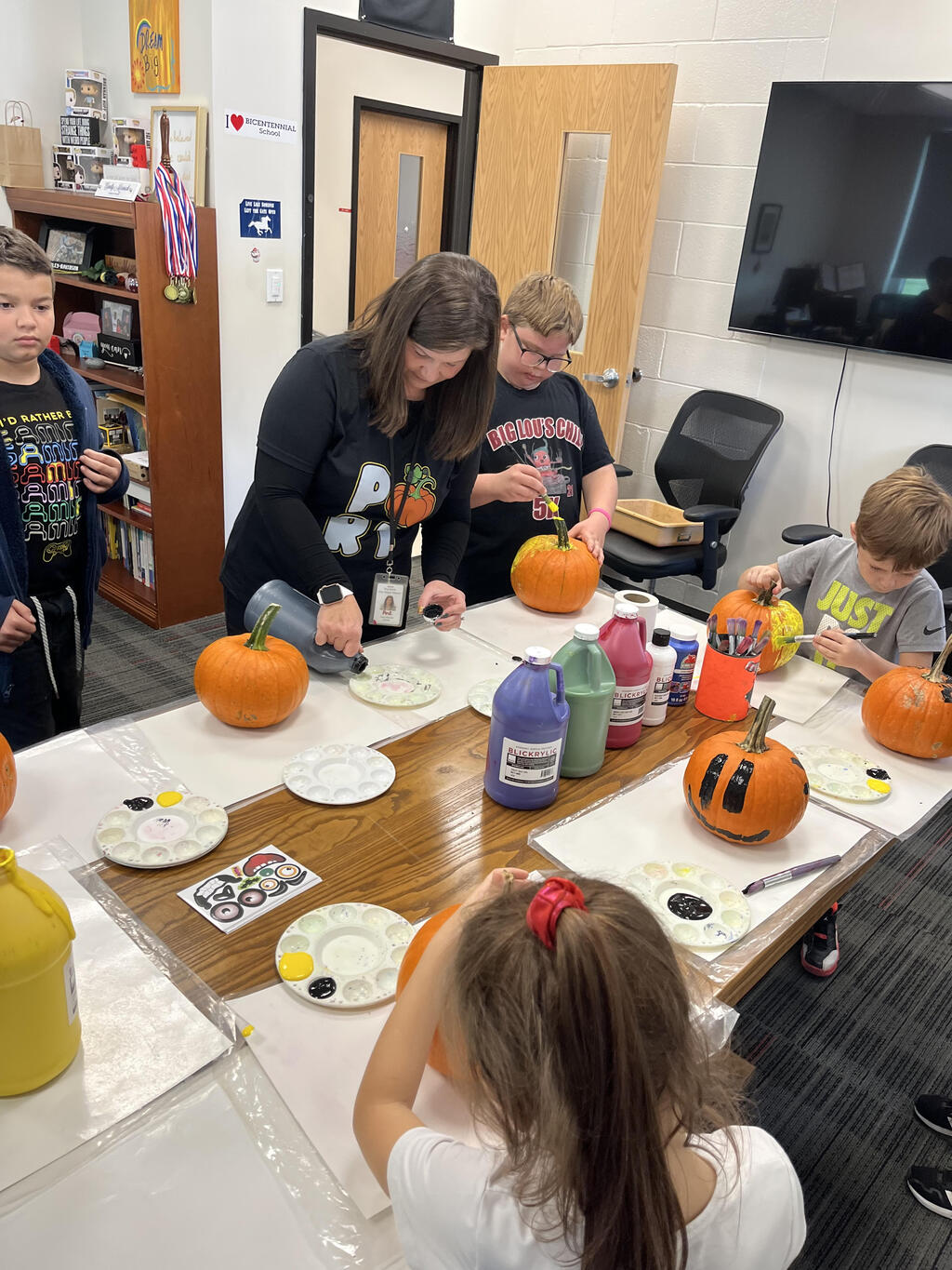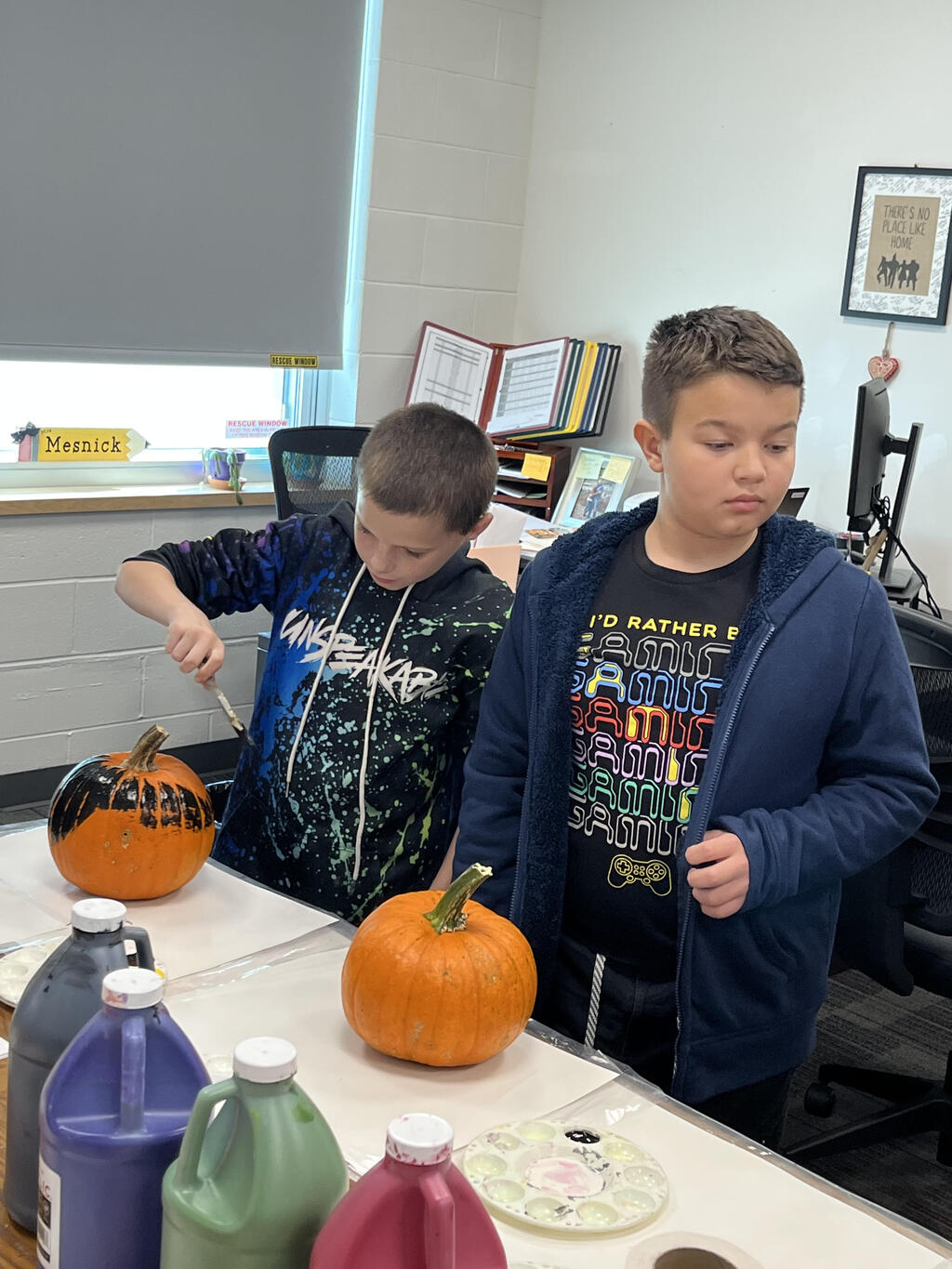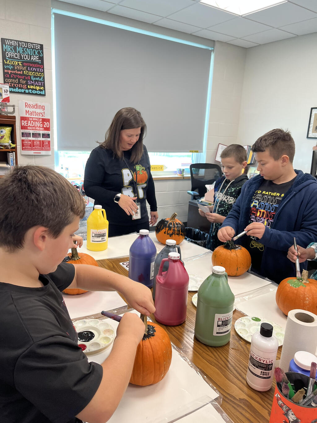 Friday, Oct. 20th was the first prize for the Mega Be Bucks drawing this year. Students' tickets were put into a raffle to win the chance to paint pumpkins with the principals. Our lucky winners were drawn on Wednesday and spent time on Friday decorating their pumpkins. Thank you to Lillian Nappo and her pumpkin stand for the donation of pumpkins!