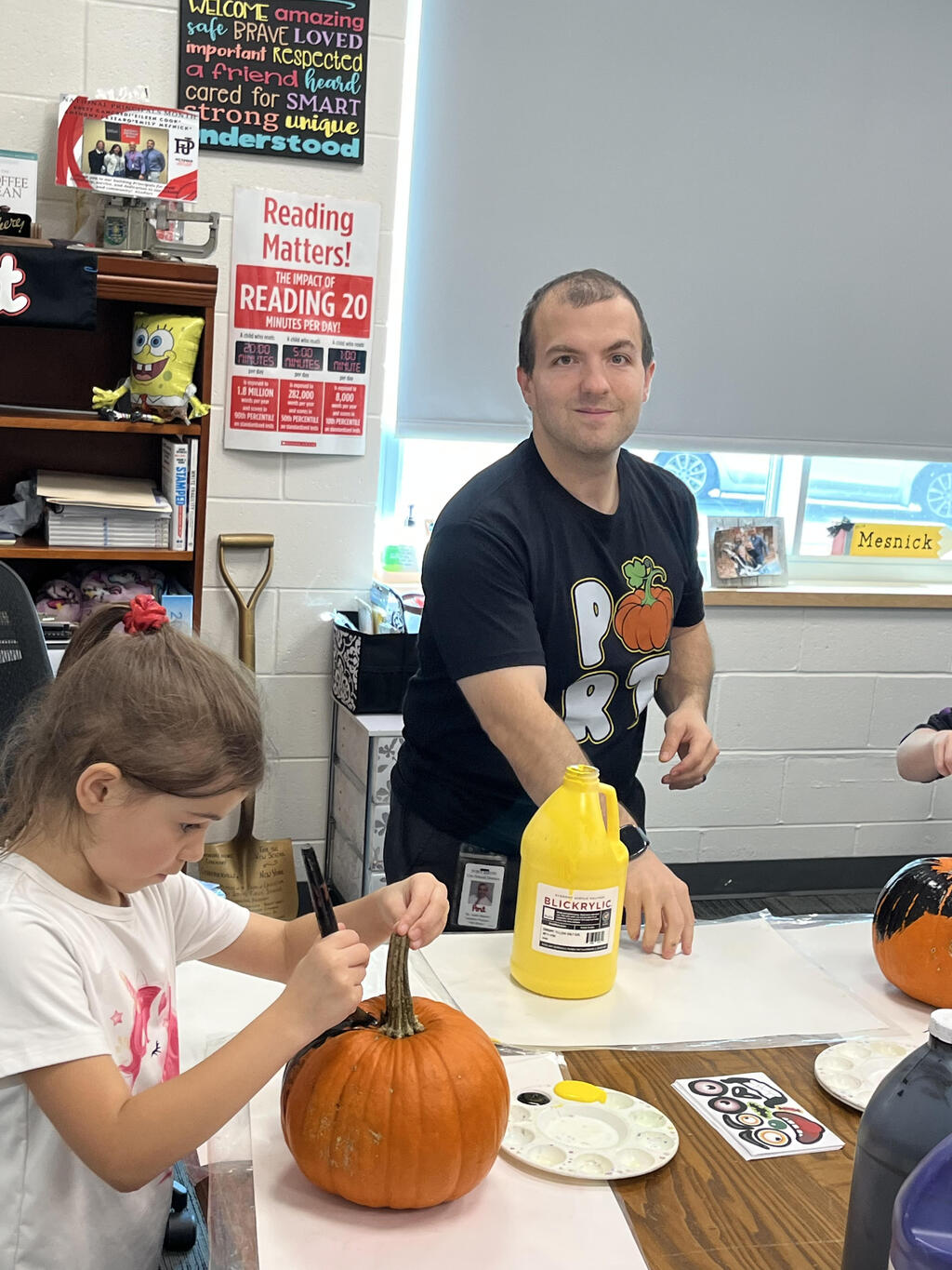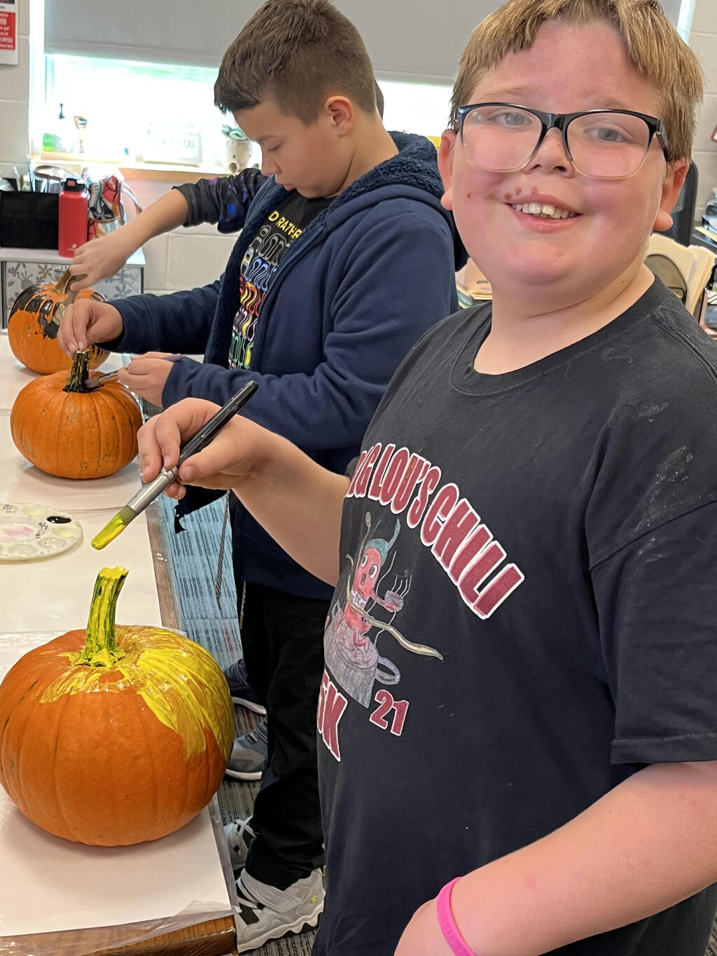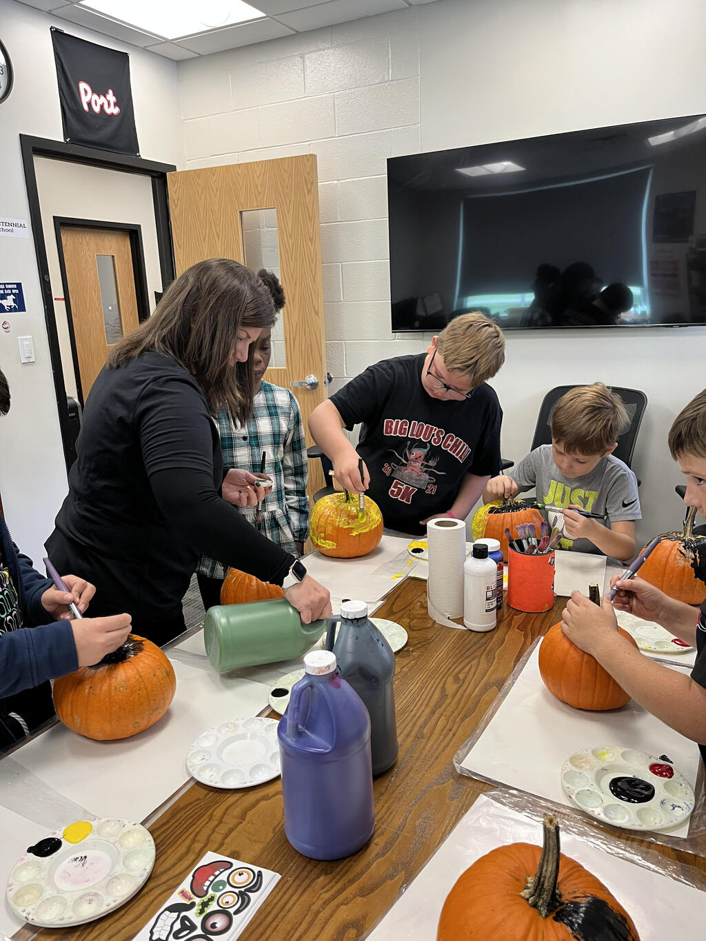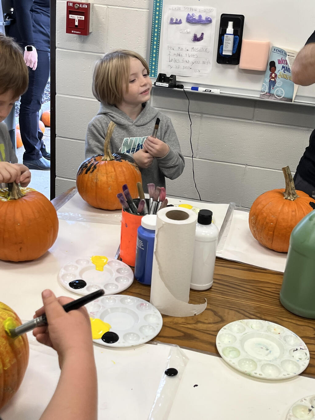 Friday, Oct. 20th was the first prize for the Mega Be Bucks drawing this year. Students' tickets were put into a raffle to win the chance to paint pumpkins with the principals. Our lucky winners were drawn on Wednesday and spent time on Friday decorating their pumpkins. Thank you to Lillian Nappo and her pumpkin stand for the donation of pumpkins!