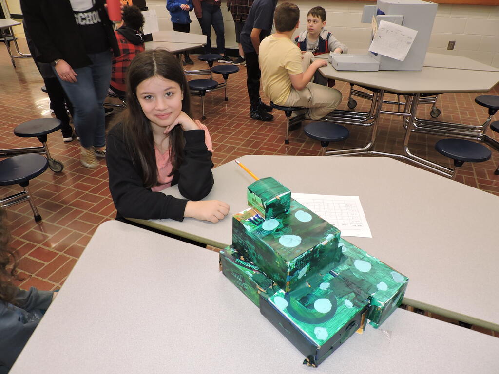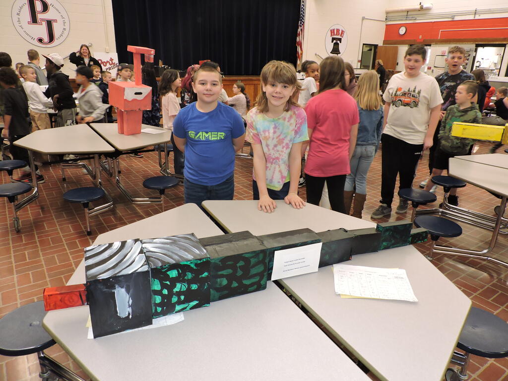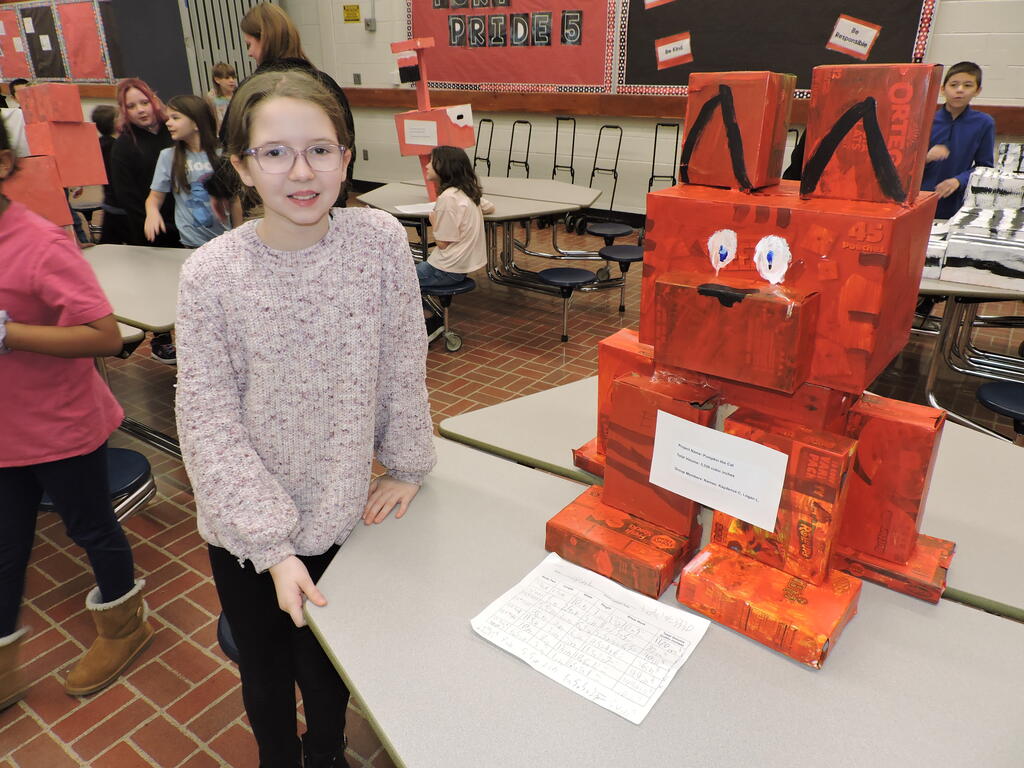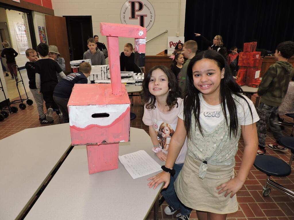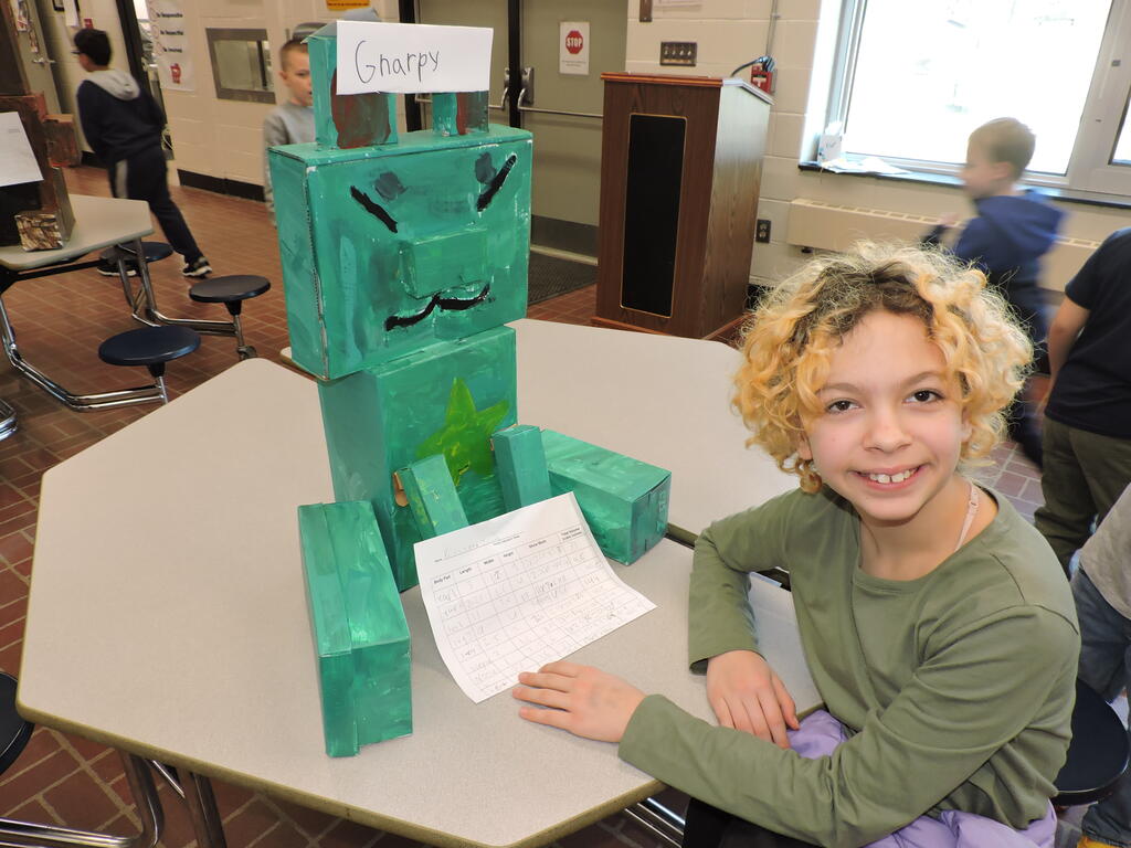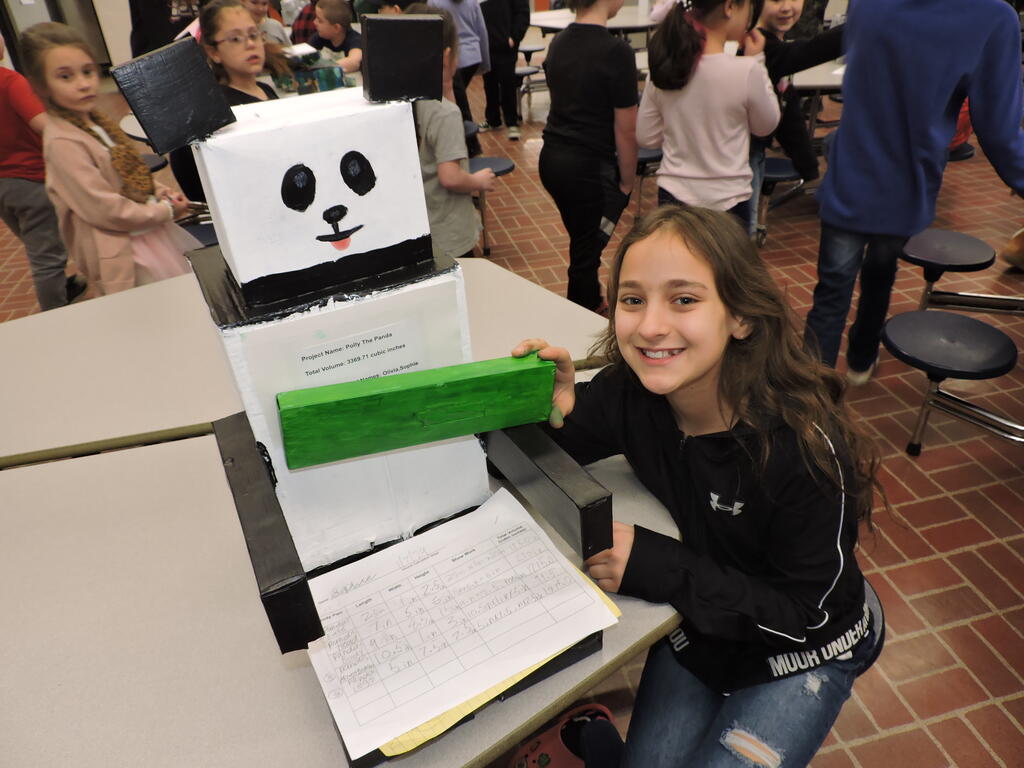 HBE's 5th graders have been learning about volume and how to figure out the volume of composite figures. Students had to use the volume formula to find the additive volume of multiple rectangular prisms. They then took their knowledge and created animals and/or creatures out of recycled boxes. Finally, they had to find the total volume of their creations. Our students shared their projects with their peers and the rest of the school today.