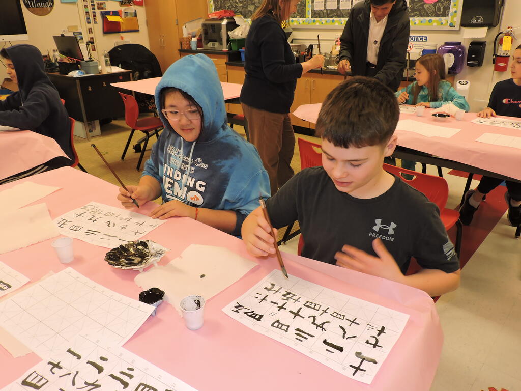 Representatives from New Century Festivals, a community partner of Hamilton Bicentennial Elementary School, visited the students in second through sixth grades to celebrate Lunar New Year. The students either learned about the Chinese language through calligraphy or they created a beautiful lotus flower using origami techniques.