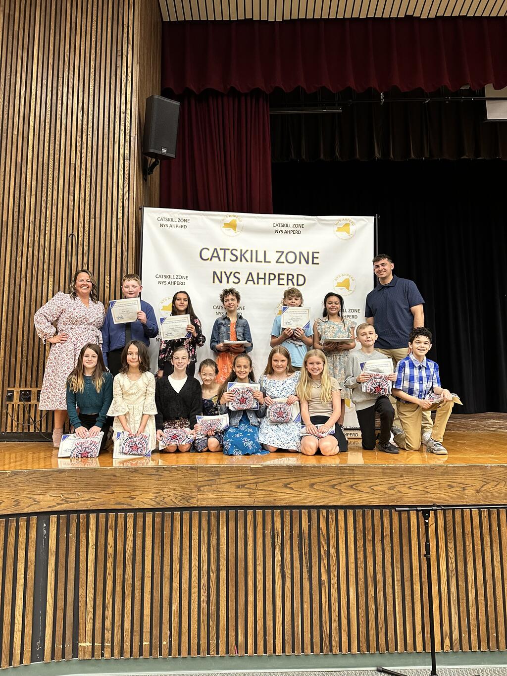 On Saturday, May 11th at Minisink Valley High School, 1 Middle School student and 25 HBE students were awarded the NYS AHPERD Catskill Zone Physical Education Leadership award. All schools in the Catskill Zone of the New York State Association for Health, Physical Education, Recreation and Dance in Orange, Ulster, and Sullivan Counties were invited to select honorees at the elementary, middle, and junior high school levels.
