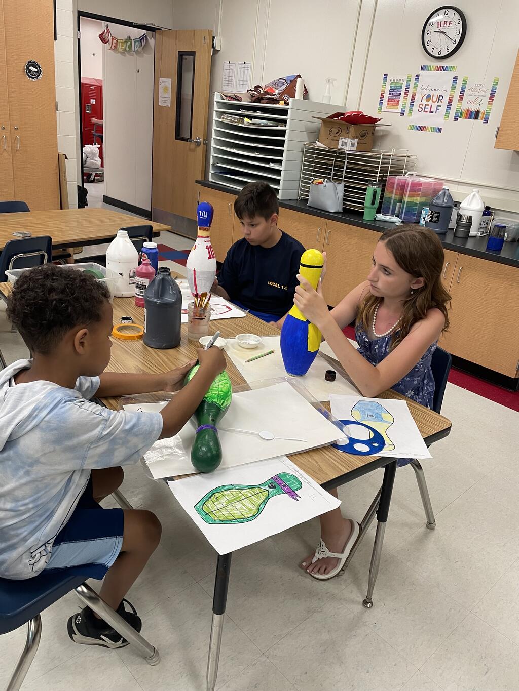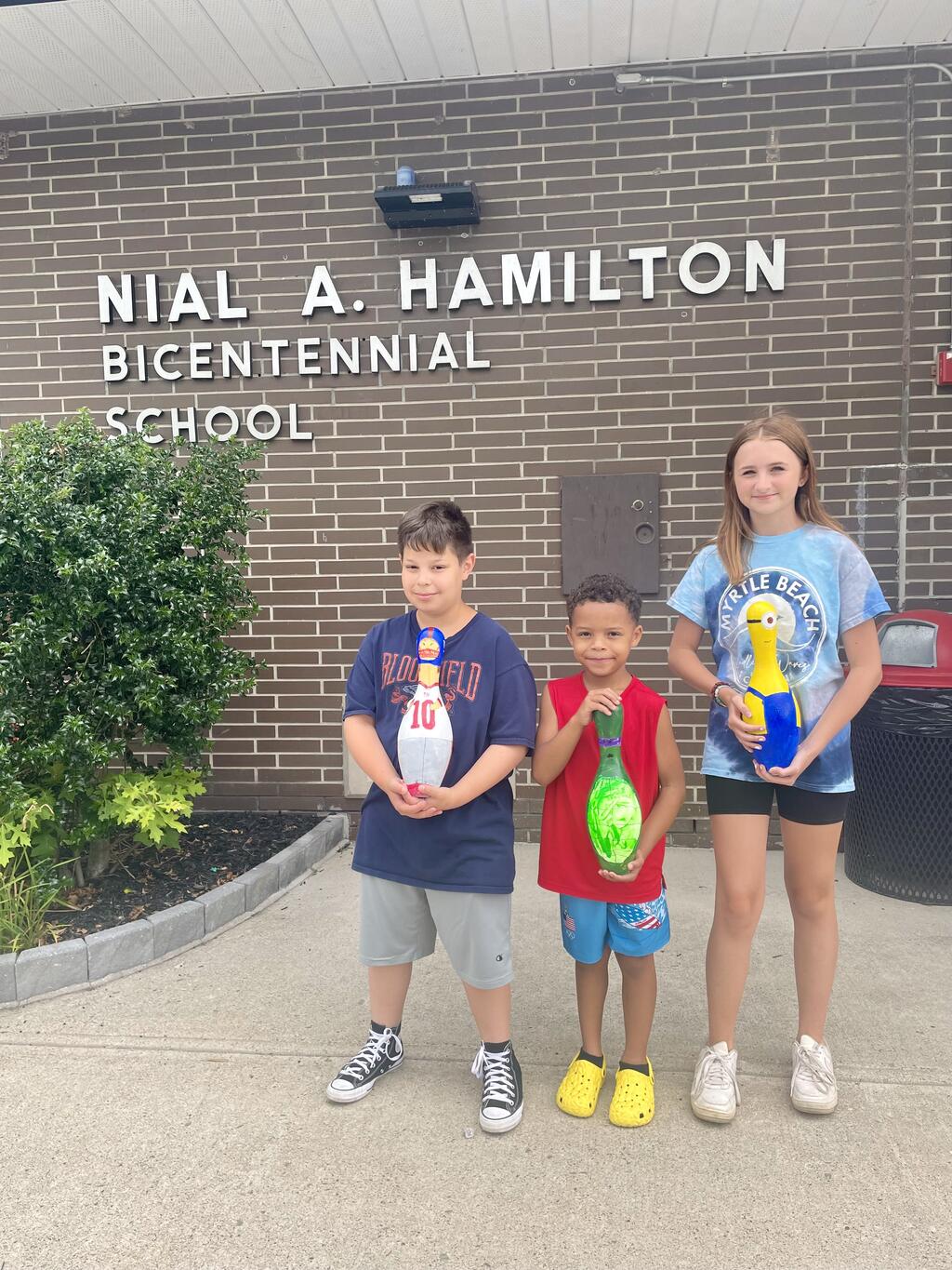 Congratulations to Xavier Brown, Bernard O'Donohue, and Tiffany VanHorn who won the HBE Physical Education Bowling Pin Contest during the year. During their PE bowling unit, students created their own bowling pin during Mrs. Kilgore's Art class. The top 3 winners received a free game to Memory Lanes in Port Jervis. They also just completed their images on a real bowling pin to take home. Thank you to Memory Lanes for donating the free games and bowling pins and to Mrs. Kilgore for helping our students make their images come to life.