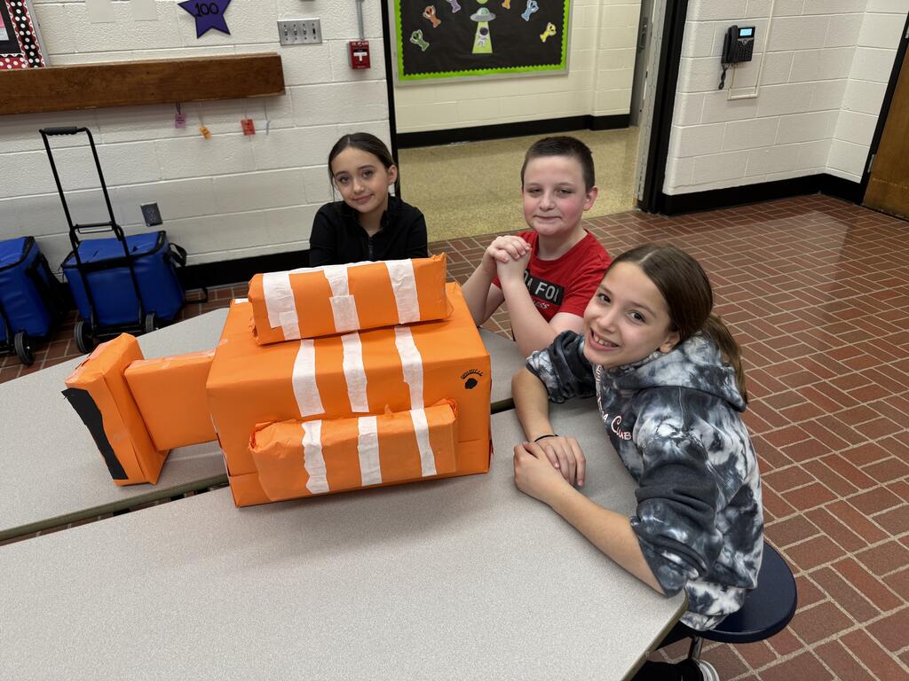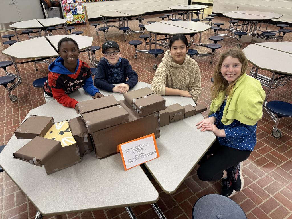 Our fifth graders at HBE have been working on finding the total volume of multiple composite figures. To culminate our unit, the students worked in groups to create animal projects made out of multiple rectangular prisms. The groups then found the total volume of their animal and displayed them for the school to view.