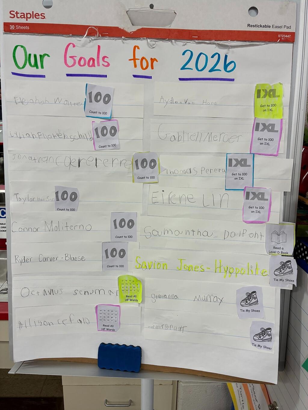 Ms. Haight’s & Mrs. Degrote’s Kindergarten Class is Setting Goals for 2026! And…working towards meeting our goals!