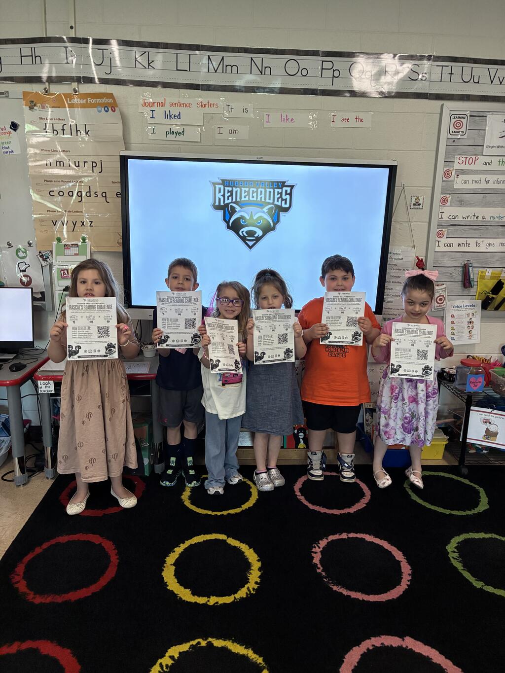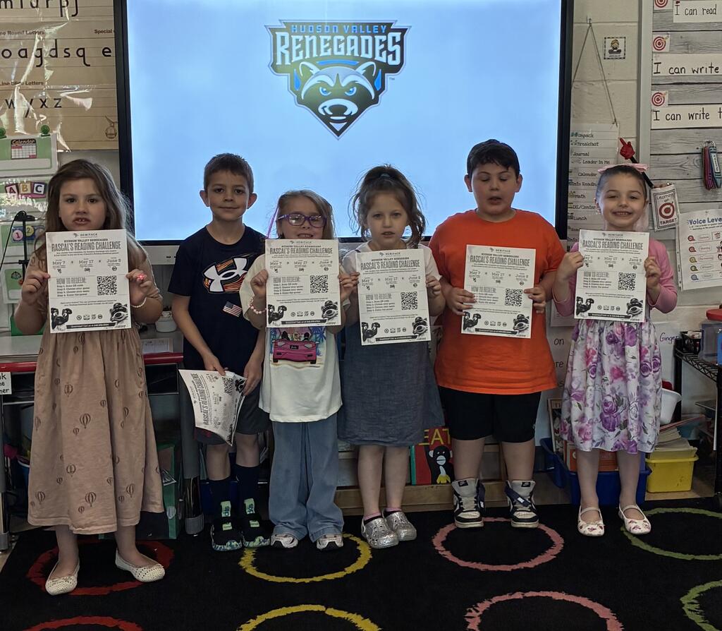 These students in Mrs. Haight’s and Mrs. DeGrote’s class accepted and completed the HBE Reading Challenge and earned 2 free baseball tickets to the Hudson Valley Renegades!