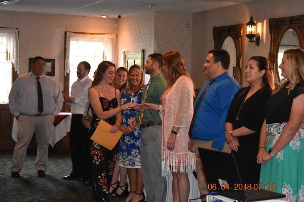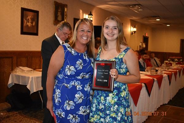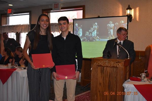 MALE AND FEMALE SPORTSMANSHIP AWARD: Michael Piscitelli from Varsity Baseball Coach Jason Gunderman, and Shannon Klotz from Varsity Football and Basketball Cheerleading Coach Christine Addy