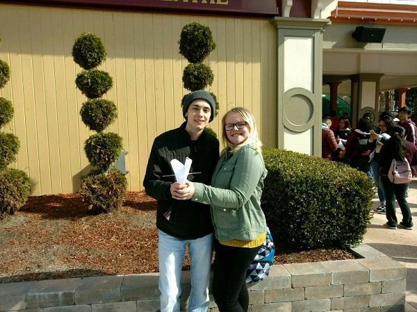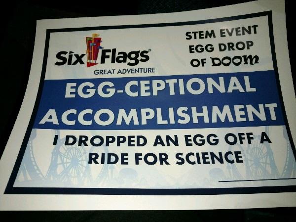 April 20th, 2018 - Port Jervis High School, Port Jervis, NY - Port Jervis High School students visited Six Flags Great Adventure on Physics Day to participate in STEM related events. Activities included an Egg Drop for which students had to design and build a capsule that would protect a raw egg. Line Cut passes good for four people were given to survivors. Gavin Staerker's design was successful as well as Tori Frankenthal's design. Tori was unable to attend so her fellow Astronomy classmates represented her. Thereafter, Gabby Santoro won free lunch with the most accurate measurement of an angle from the ground to the top of the Ferris Wheel just using her hand. She measured with less than 1% error! G-force measurements were taken using simple accelerometers on the Buccaneer which is a swinging boat ride. Afterwards, students were given an opportunity to meet the park's Chief Engineer. Then, there was a race for cars built by groups of students. The car that most slowly travels the entire track wins. The car built by Bethany Rhinehart and Zach Hanham won First Place as well as Line Cut passes. Finally, students were asked to ride the Sky Cars and throw a ball at a target while moving approximately 5 miles hour at a height of over 50 feet. The group had a wonderful time. Ms. Hartey and Mr. Koenig are very proud of the students' representation of our school district.