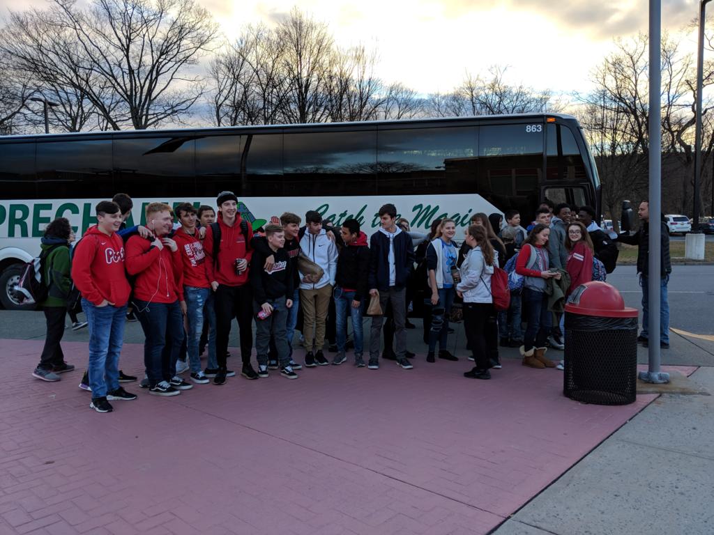 One hundred and thirty members of the sophomore class participated in a class field trip to the Regal 12 at the Nanuet Mall for a 25th anniversary commemorative screening of Stephen Spielberg's Oscar-winning film SCHINDLER'S LIST. The tickets and transportation were provided by Stephen Spielberg's USC Shoah Foundation. The students were moved by the shocking and poignant portrayal of Oskar Schindler's courageous actions during the Holocaust.