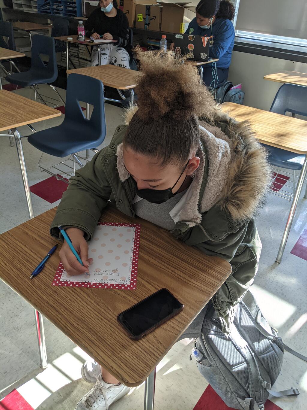 In honor of Veteran's Day, students in all of Mrs. Monahan's 10th grade English classes adopted a US Army Platoon actively serving in Syria. Using Donors Choose, Mrs. Monahan procured items that these men and women requested. All of the items will be shipped to them along with the letters of support and thanks that our students' wrote.