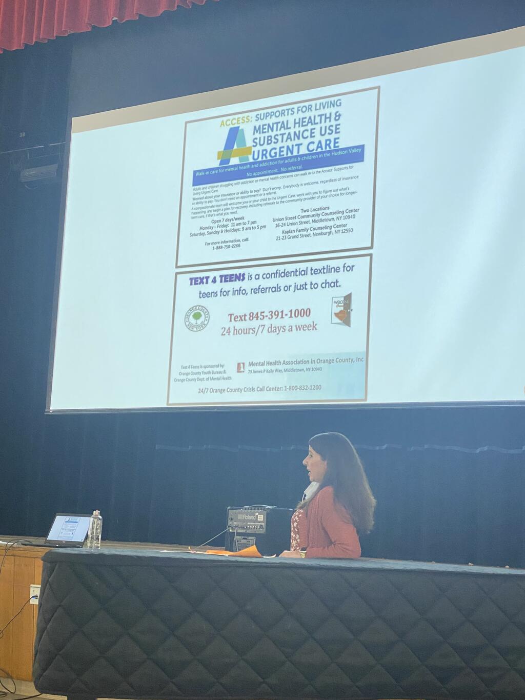 High School social worker Ms. Grismer, working with the Alcoholism and Drug Abuse Council of Orange County and Orange County STOP DWI have brought the presentation called "How to help a friend" to our students. High School students will be participating in the conversation during all of the Physical Education classes over the next couple of weeks. Topics of discussion will be why students drink alcohol, the dangers of vaping and nicotine, and signs of drug abuse. Information that allows them to identify the signs of use/abuse will also be presented. Students will receive strategies on how to help someone (or themselves) who might be struggling and will be encouraged to take advantage of the county's "Text4Teens" 24 hour anonymous hot line at 845-391-1000.