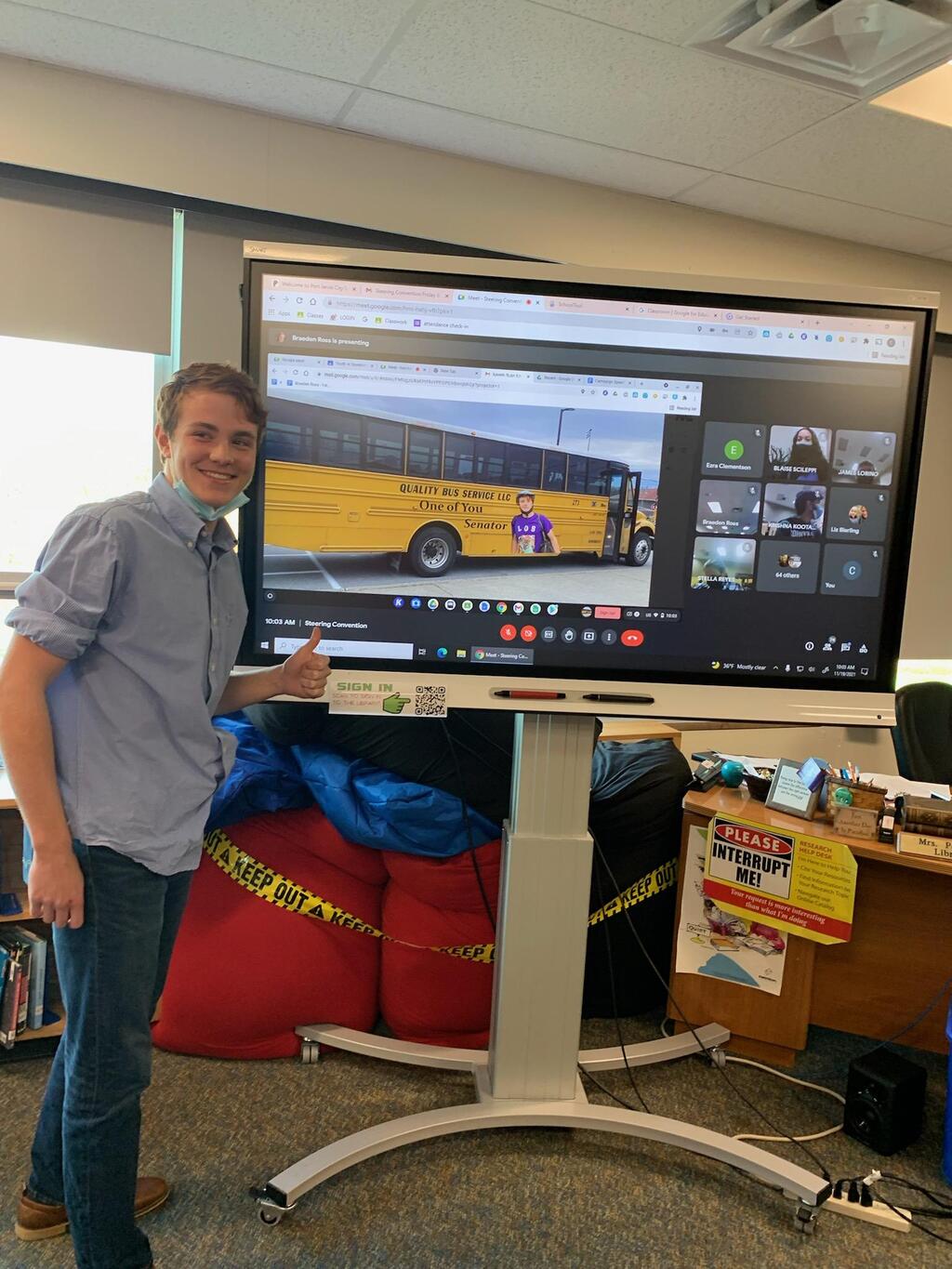 On Friday, Nov. 19th, the high school Youth in Government Club participated in the county-wide "steering committee" which is basically a mock election for numerous local and state offices. Students have the chance to learn how to campaign, debate and caucus in order to get elected to positions they wish to run for. Port Jervis Senior Braeden Ross ran for the office of State Senator against 6 other students from various Orange County schools. He had to research the office and its purpose, produce a campaign video, organize a campaign committee of his peers, write and deliver a speech, and debate questions from the voters (other Youth in Government members) in a live Meet. He was victorious and was elected to serve in this mock position. Congratulations to Braeden and his entire campaign team!