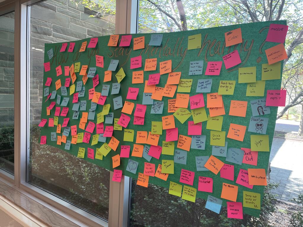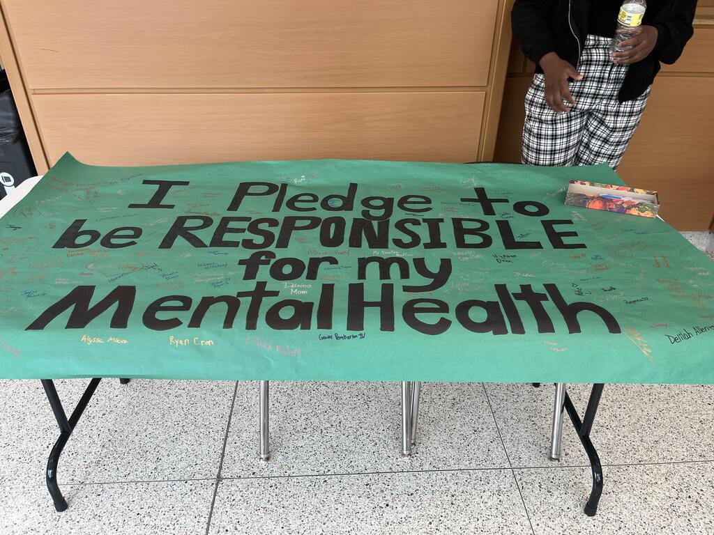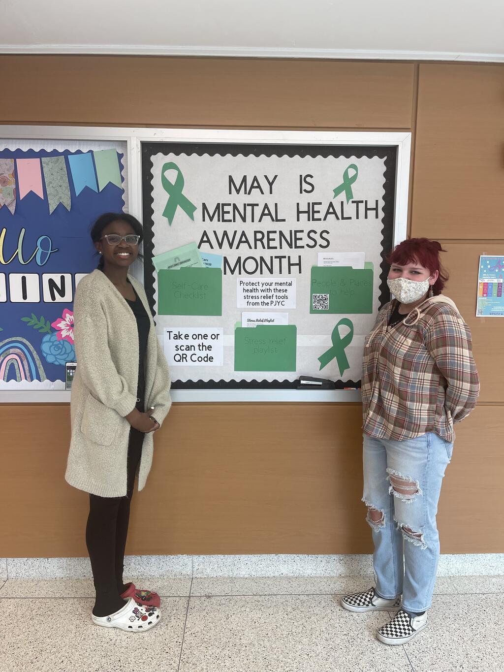 For Mental Health Awareness Month, the Port Jervis Youth Coalition (PJYC) challenged PJHS students to pledge to be responsible for their mental health and to think of one way to stay mentally healthy. Students can see what other students do and learn new strategies. Mental health resources were shared with students and the PJYC bulletin board will be up the whole month of May.