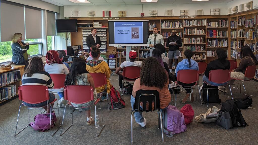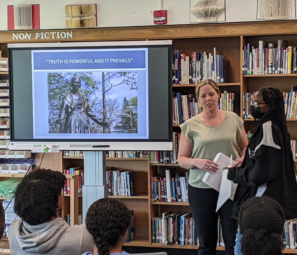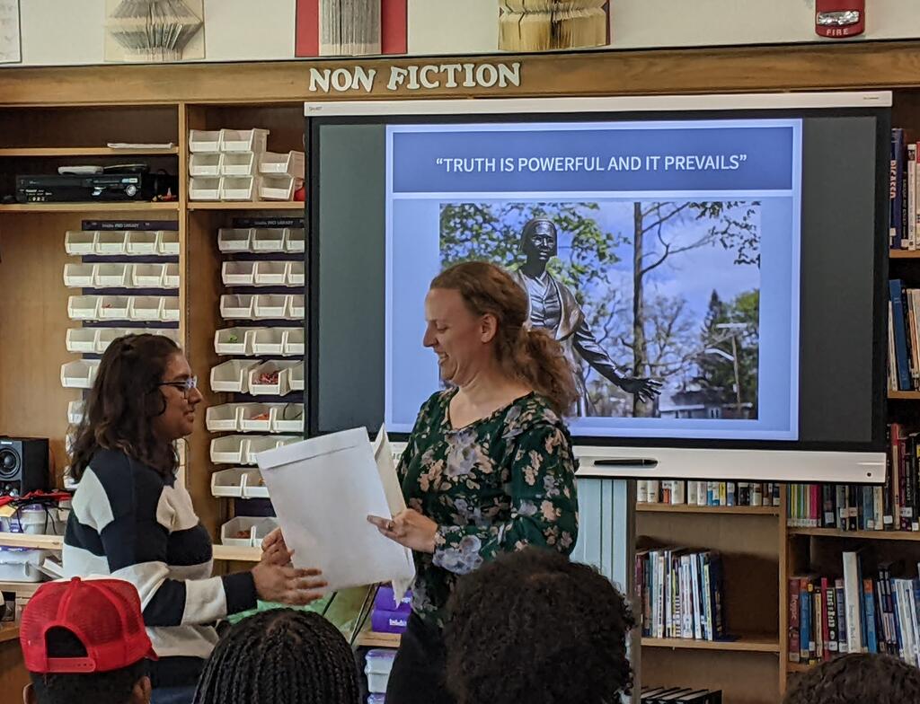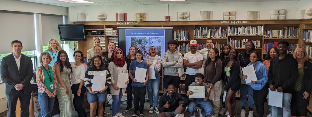 The high school recently celebrated the students in our building who were nominated for a Sojourner Truth Award by their teachers. For the past thirty-two years, in honor of Sojourner Truth, Orange County Community College has celebrated Orange County youth by awarding them for their achievements. OCCC continues to recognize the accomplishments of these deserving students and encourages college attendance as an option for students from groups traditionally under-represented in the college population. All nominated students received Certificates of Recognition from SUNY Orange. The following students were recognized: Mayowa (Kingsley) Babalola, Royal Burke, Elijah Campbell, Tyrie Caridad, Geffen Cauthen, Alexis Clark, Coral Garcia, Andre Griffith, Umm Habiba, Dakota Kays, Paris Khan, Meghan Lauture, La'Niece McGlory, Louis McGlory, Jessenia Meneses, Antonio Michelen Sanchez, Lexie Pospisil, Brielle Rene, Ashley Russell, Jasmine Storer, Aaliyah Summons, and Taylor Walters-Gregory.