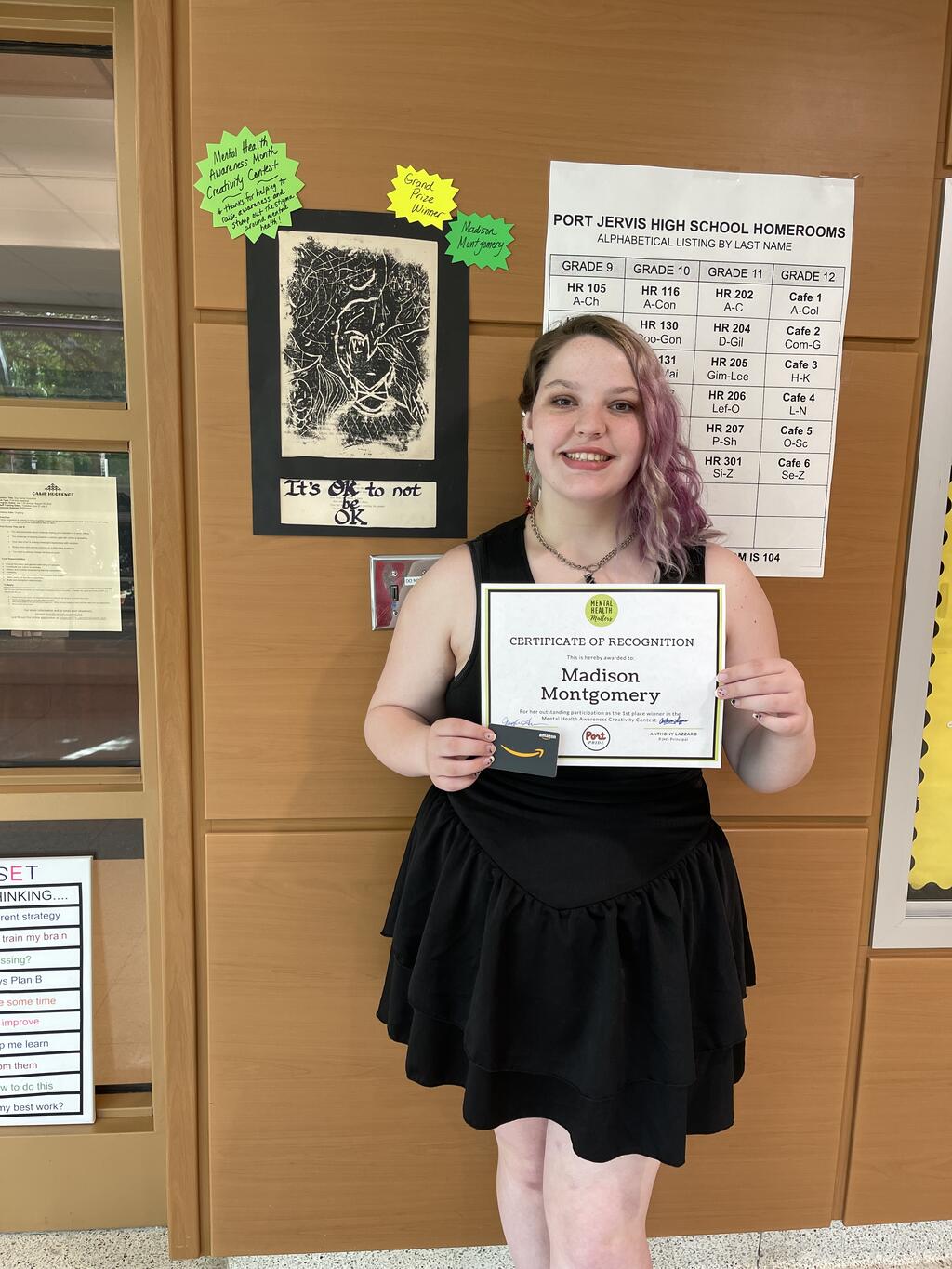CONGRATULATIONS to Madison Montgomery!! She is the grand prize winner of the high school's Mental Health Awareness Creativity Contest! The contest was one of the activities held at the high school during the month of May for Mental Health Awareness Month. Thank you, Madison, for helping to raise awareness and stomp out the stigma around mental health.