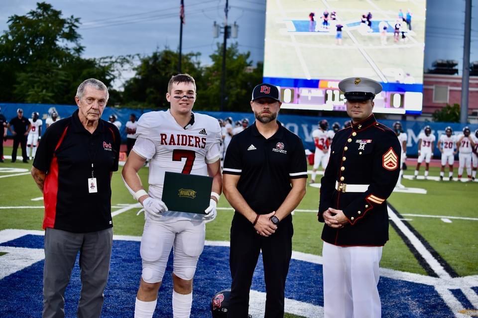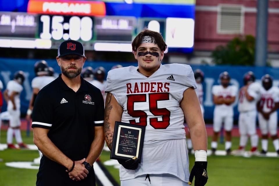 The Port Jervis Varsity Football team defeated Middletown last week 33-19 to bring the historic Erie Bell back to Port Jervis. In pregame ceremonies, Senior Tyler Montalvo (pictured, #55 with Head Coach Damien Striharsky) was announced as the winner of the Faller Award, and the US Marine Corps presented Senior Tyler Howard (pictured, #7) with the Great American Rivalry Game Award. After the game, Senior Jacob Balmos was announced as the game MVP and Junior Logan Morris was presented with the honor of offensive player of the game. Additionally Port Jervis' kicker, Junior, Alexa Bennett added her name to the history books with her PATs, becoming the first female player to score points in the annual rivalry game, which began in 1897. Congratulations to the team and the coaches on a great game and the win.