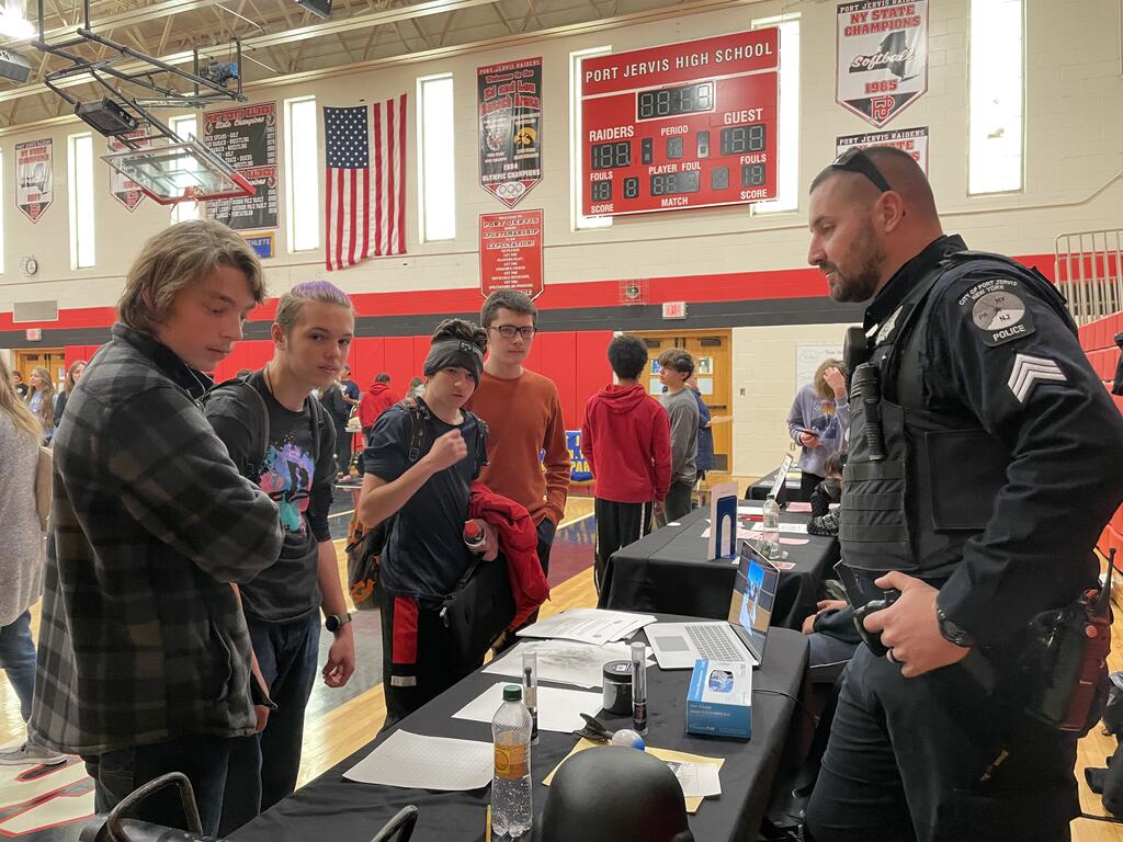 On November 17th, high school students participated in a building-wide assembly led by Christopher Holshek, Colonel, U.S. Army (Ret.), founder of the National Service Ride project, Michael Bark of the Orange County Youth Bureau, and guest speakers from the Port Jervis Learning Community, Mr. Decker and Ms. Cassara. The unique backgrounds of all of the presenters contributed to an outstanding assembly in which the message of service through volunteering was highlighted. The following day, November 18th, representatives from over 20 local organizations met with students each period of the day to share the ways that they can volunteer and acquire community service experiences locally. The day was highlighted by several demonstrations in which our students were able to participate. Thank you to all that joined in to participate and embrace the importance of volunteering through service to the community. We look forward to the ongoing relationships between school and community!
