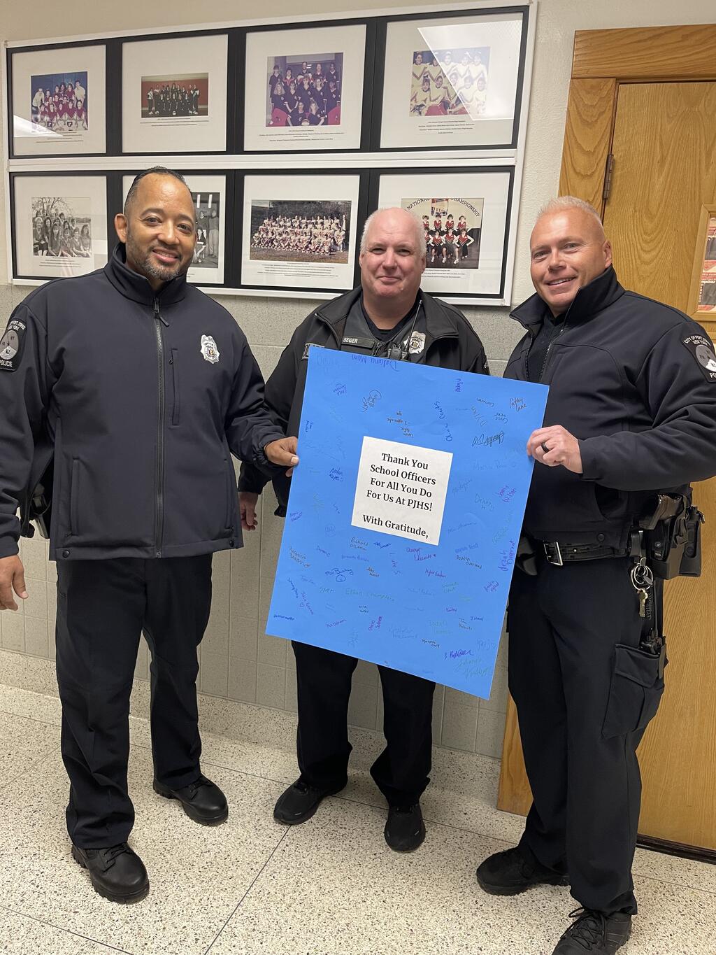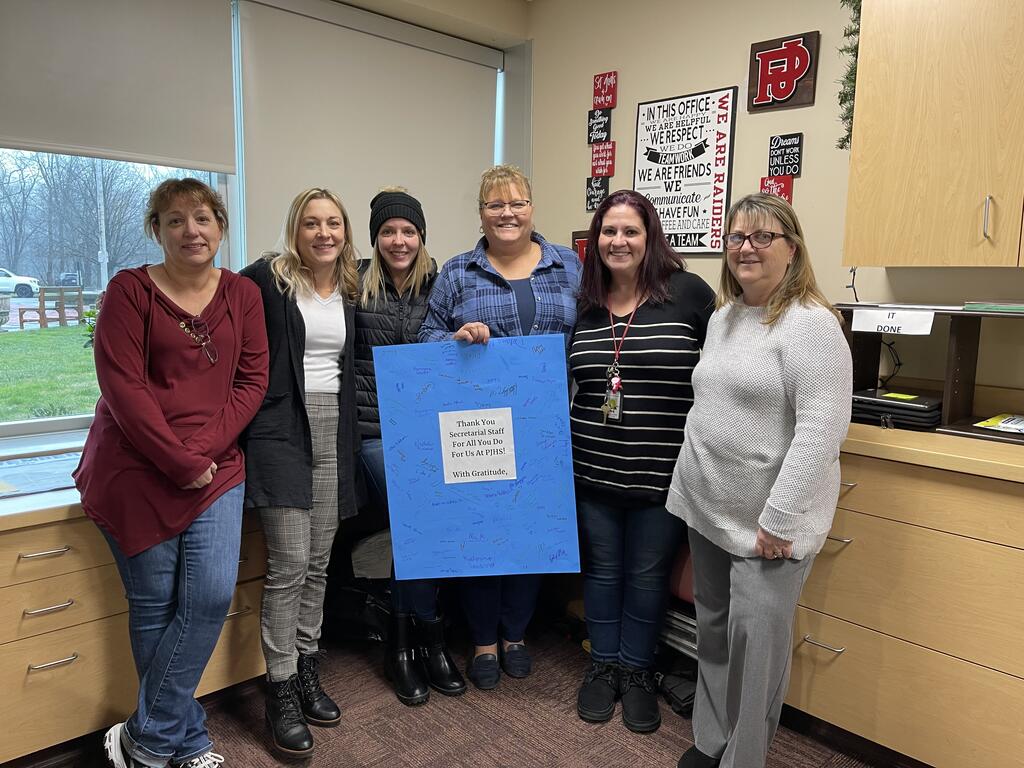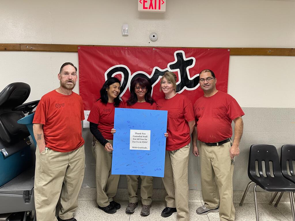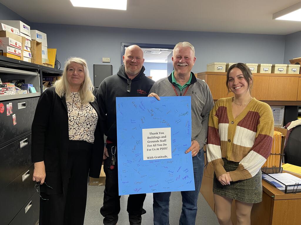 In November, the students at PJHS shared a token of gratitude to the "behind the scenes" personnel who make our school run smoothly. Students signed thank you cards for all of these special people! The Character Trait for the Month of November was gratitude and this was just a small way to show the secretaries, cafeteria staff, school monitors, our nurse, the school resource officers, the bus drivers, and our custodial and buildings and grounds staff how much they are appreciated!