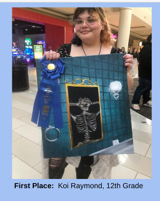 Additionally, Koi Raymond won first place for the high school division. Koi is a Senior this year and will be attending Purchase in the fall. Congratulations to all our artists!