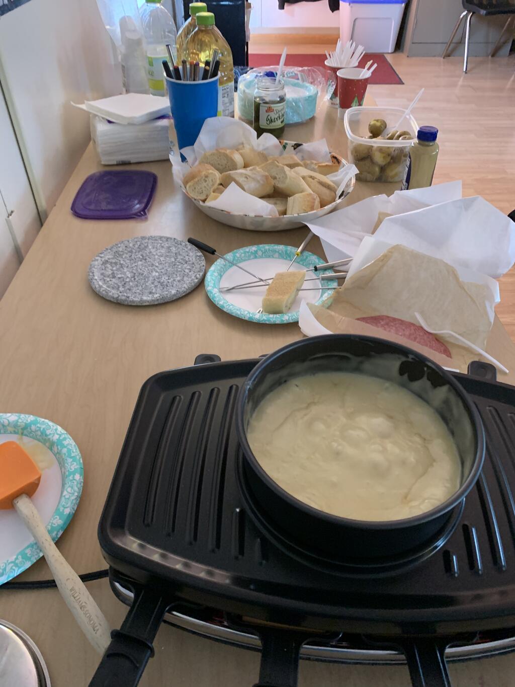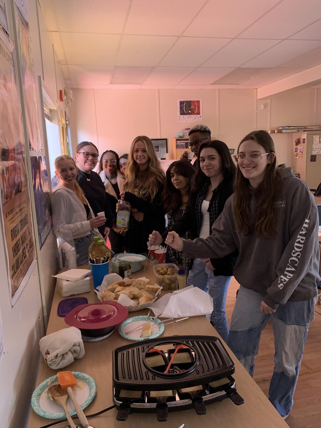 The Société Honoraire de Français recently enjoyed a fondue fest to celebrate its newest members: Kingsley Babalola, Joelisa Rivera, Rachel Masker, Yacine Niasse, and Isabel Ricketson. Members feasted on traditional Swiss Fondue as well as raclette and charcuterie.