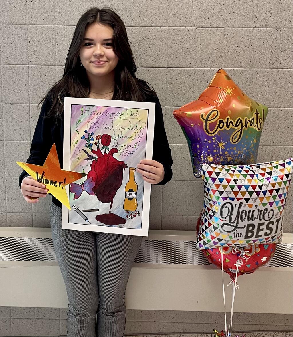 Ari was the grand prize winner for the grade 7-12 Spanish digital poster submission and Karys is the grand prize winner for the grade 7-12 Spanish hand-drawn poster submission.