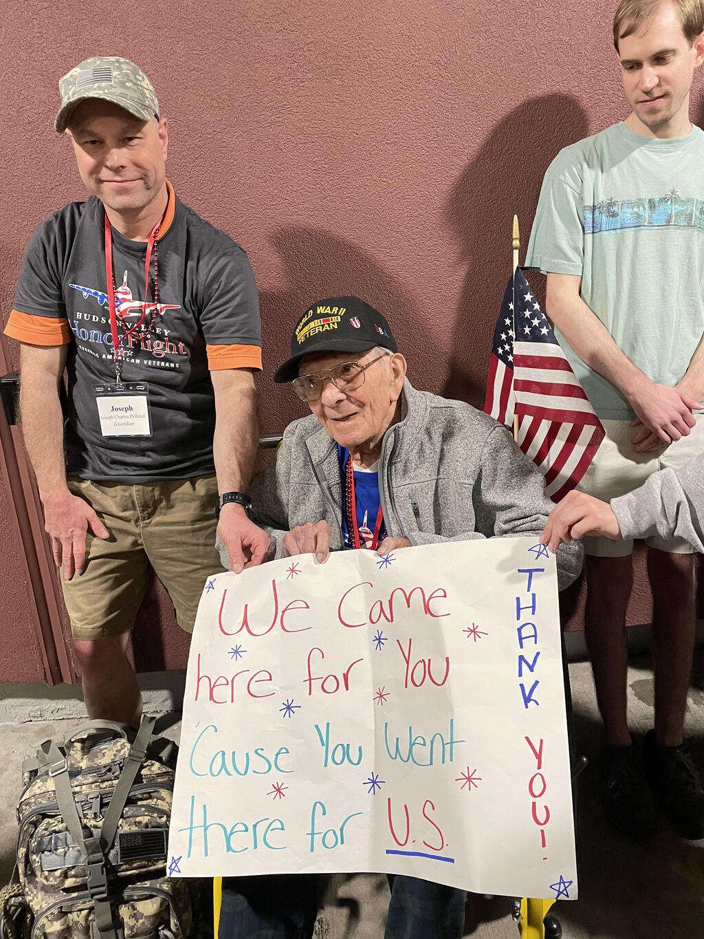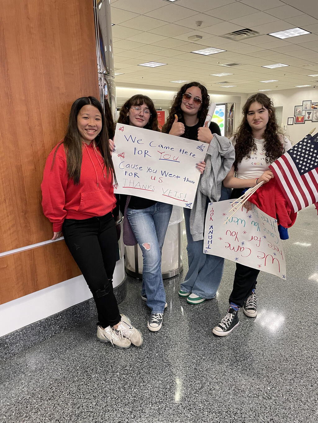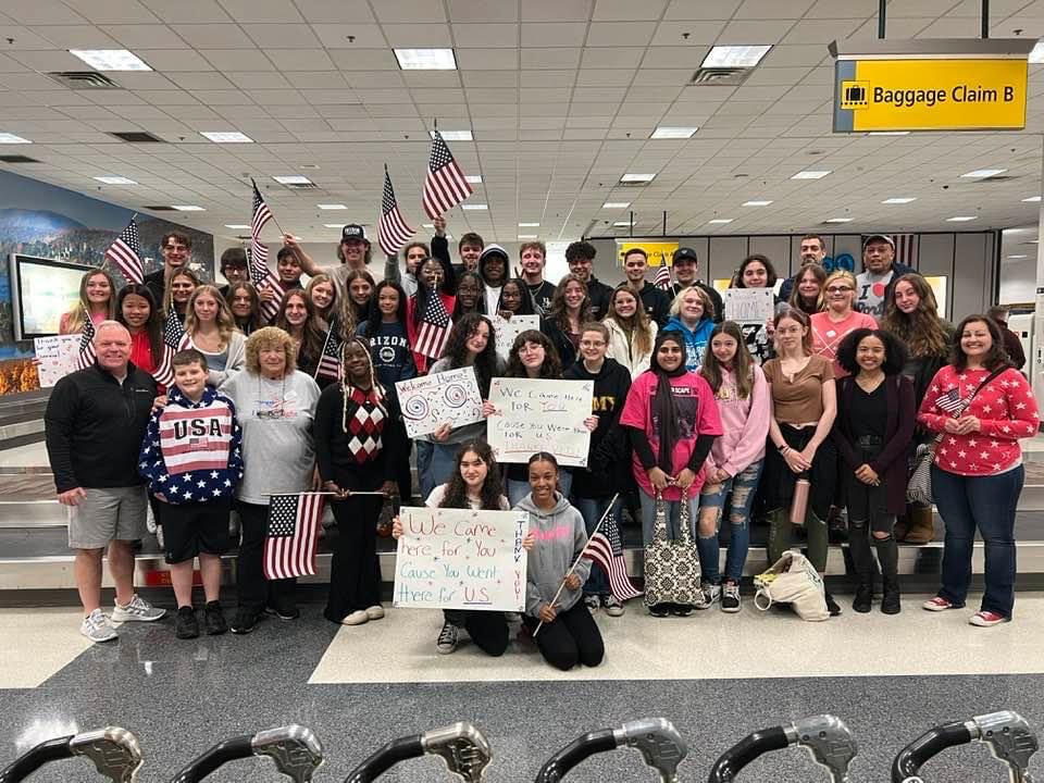 Thank you to all our staff and students who traveled on Saturday, April 15th, to Stewart Airport to take place in the homecoming of the Hudson Valley Honor Flight, Mission #29. Students made signs to welcome the honored veterans home from Washington DC and participated in the welcome home rally at the airport. The Hudson Valley Honor Flight allows our veterans to experience Washington DC's monuments and memorials and is a special way to thank them for their service. For more information about the group and their missions, visit: https://hvhonorflight.com/