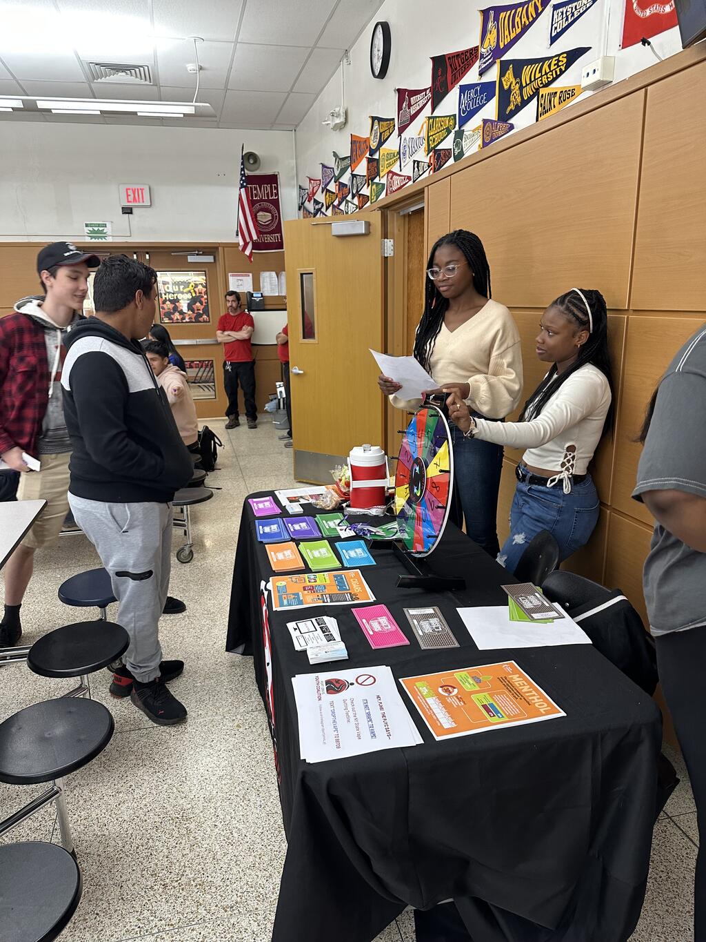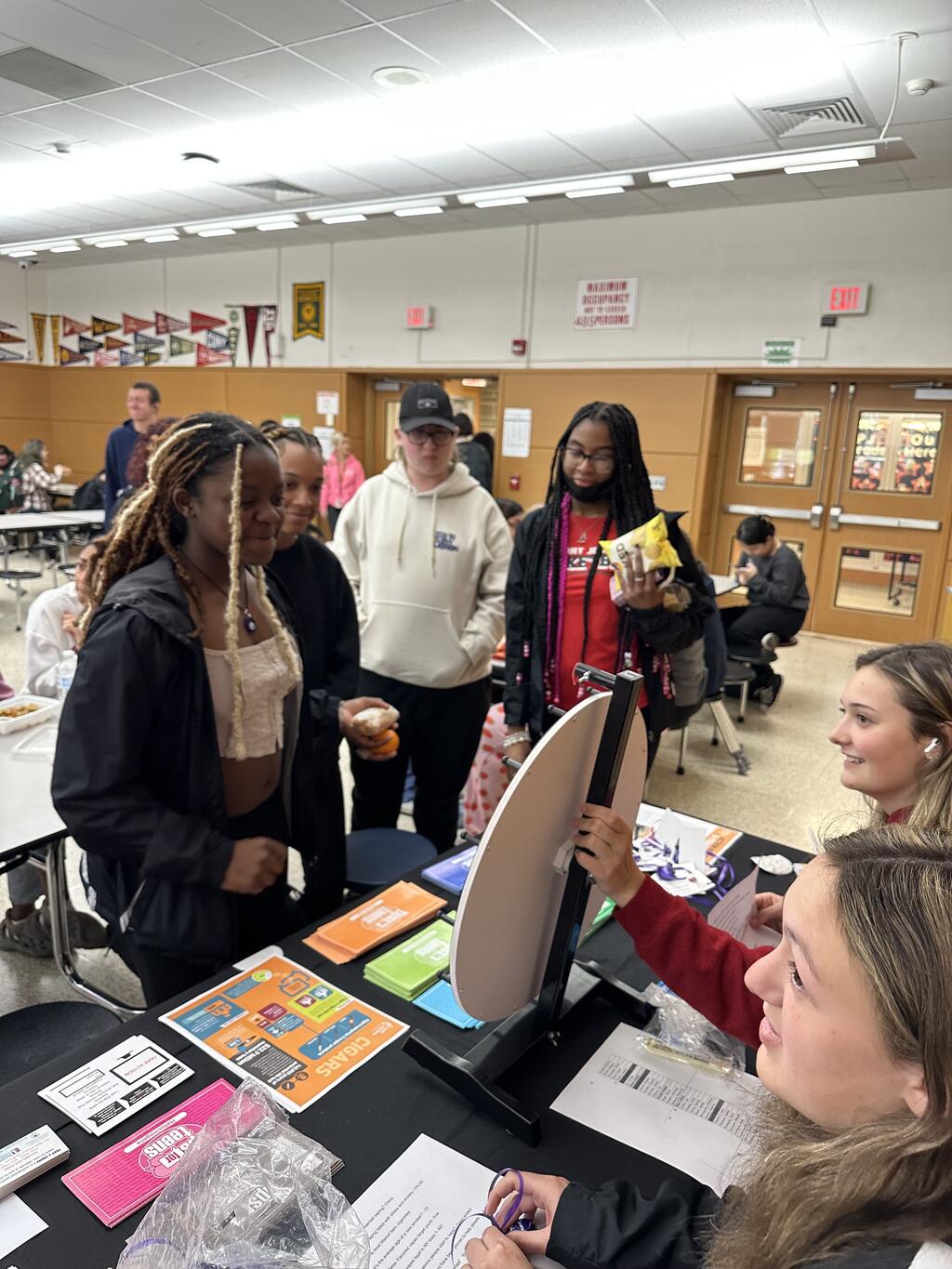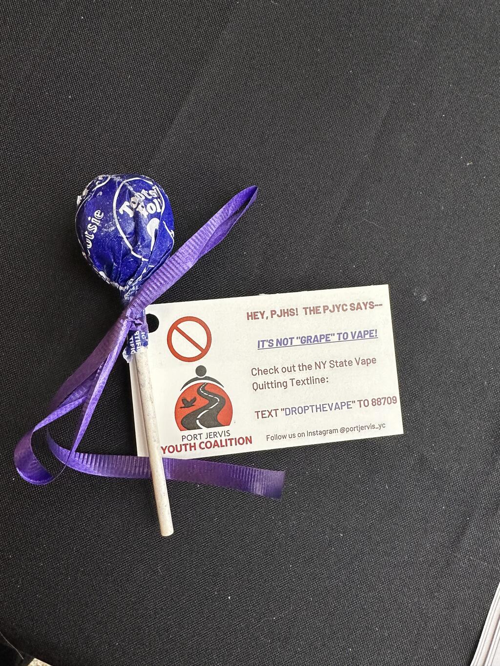 Last week, the Port Jervis Youth Coalition (PJYC) had an informational table for students in the cafeteria during lunch periods with their "It's not Grape to Vape" game. Students answered questions related to vaping in order to win a lollipop prize. The goal was to promote the NYS free and confidential vape quitting text line specifically for teens. Students were encouraged to stop vaping and informed that they could start that process by texting "DROPTHEVAPE" TO 88709
