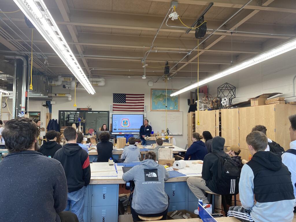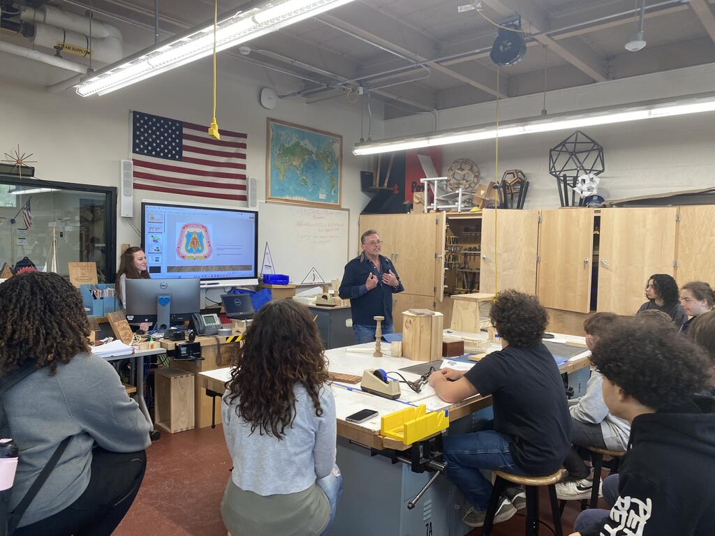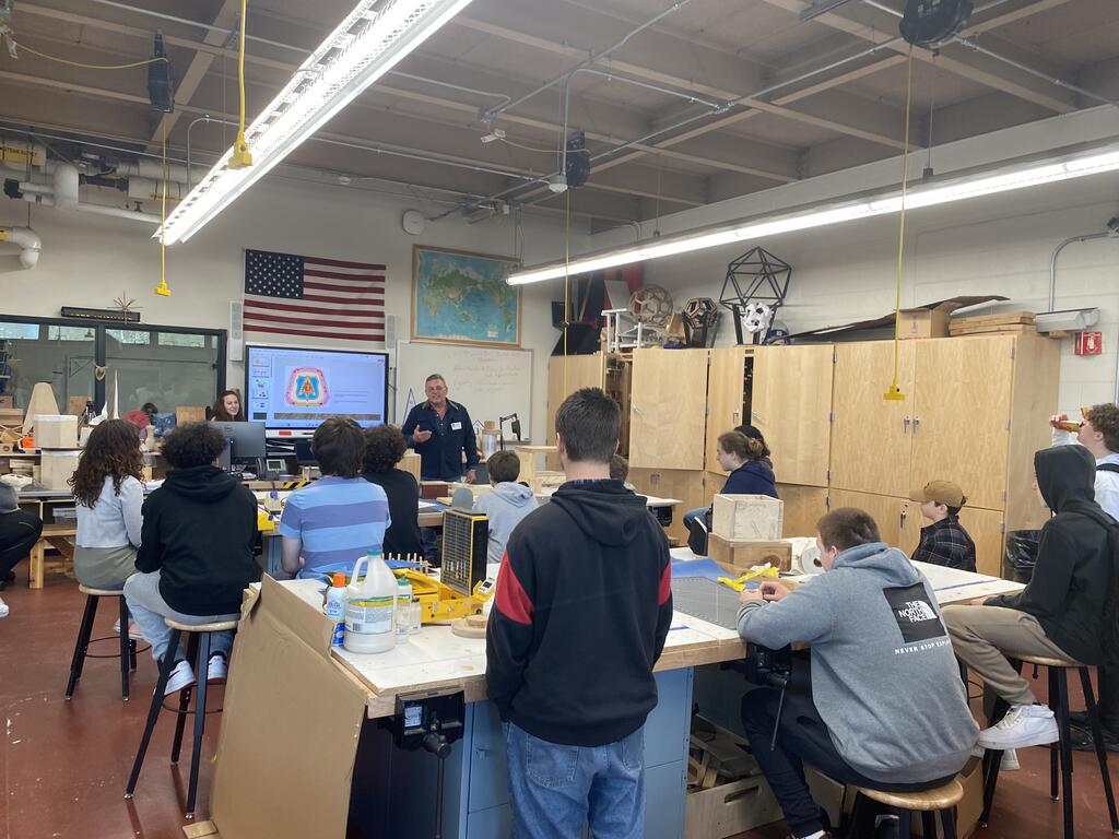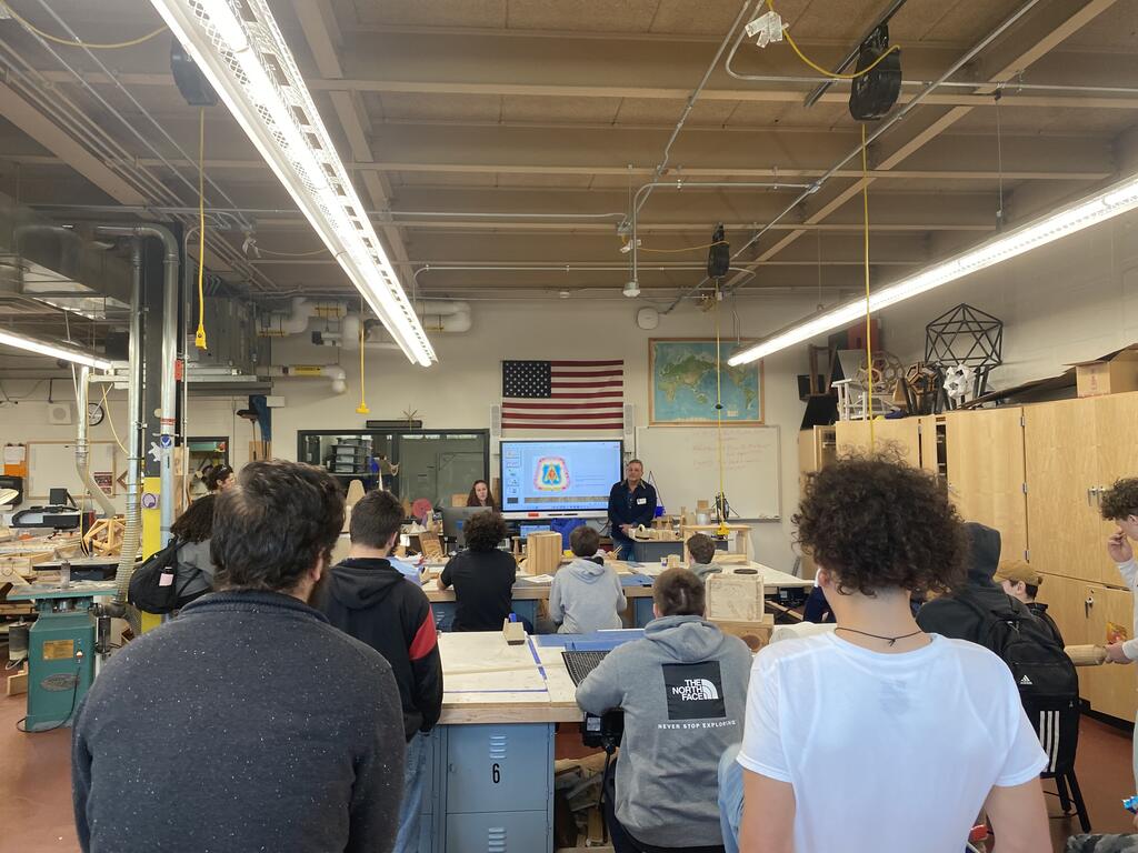 On Thursday, April 20, 2023, representatives from the North Atlantic States Regional Council of Carpenters visited Port Jervis High School Technology Education students to present and discuss opportunities available to students after graduation with the Local 279 and their “earn while you learn” apprenticeship program. Mr. Matt Ross and Ms. Melissa Clark from Local279 discussed training opportunities that allow students to earn tuition-free college credits, career and work experiences, as well as many other benefits afforded to them by joining the Carpenters' Union.