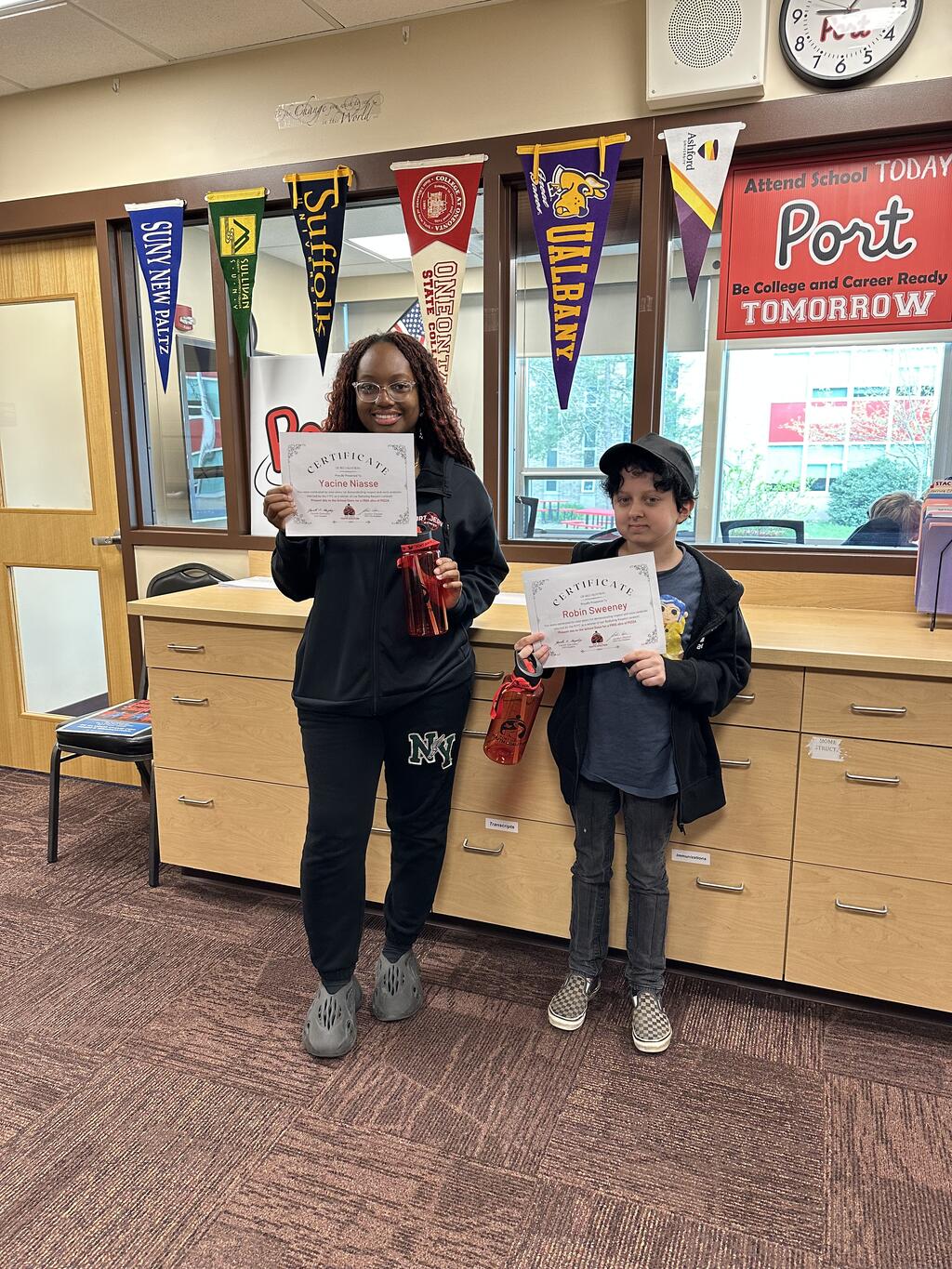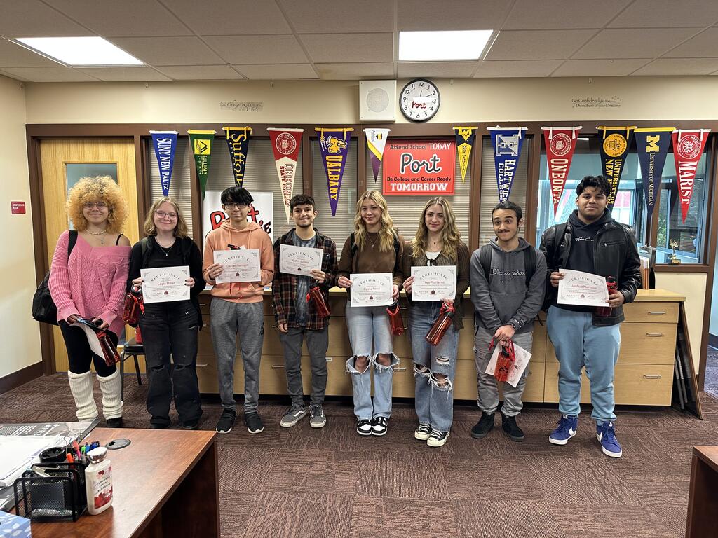 The PJYC (Port Jervis Youth Coalition) would like to thank the students and staff who participated in our RESPECT Contest by nominating their peers who show respect in their attitude and behavior. Ten prize recipients were randomly selected from all the nominees. Congratulations to the following PJHS students: Aidyn Sotelo, Robin Sweeney, Theo Moliterno, Joshua Mursalin, Daniel Morejon, Yacine Niasse, Antonio Berdecia, Alyssa Reed, Layla Miller, and Juliana Vasquez. Each of the 10 winners received a PJYC water bottle, lanyard, and a slice of pizza from the school store from the youth coalition.
