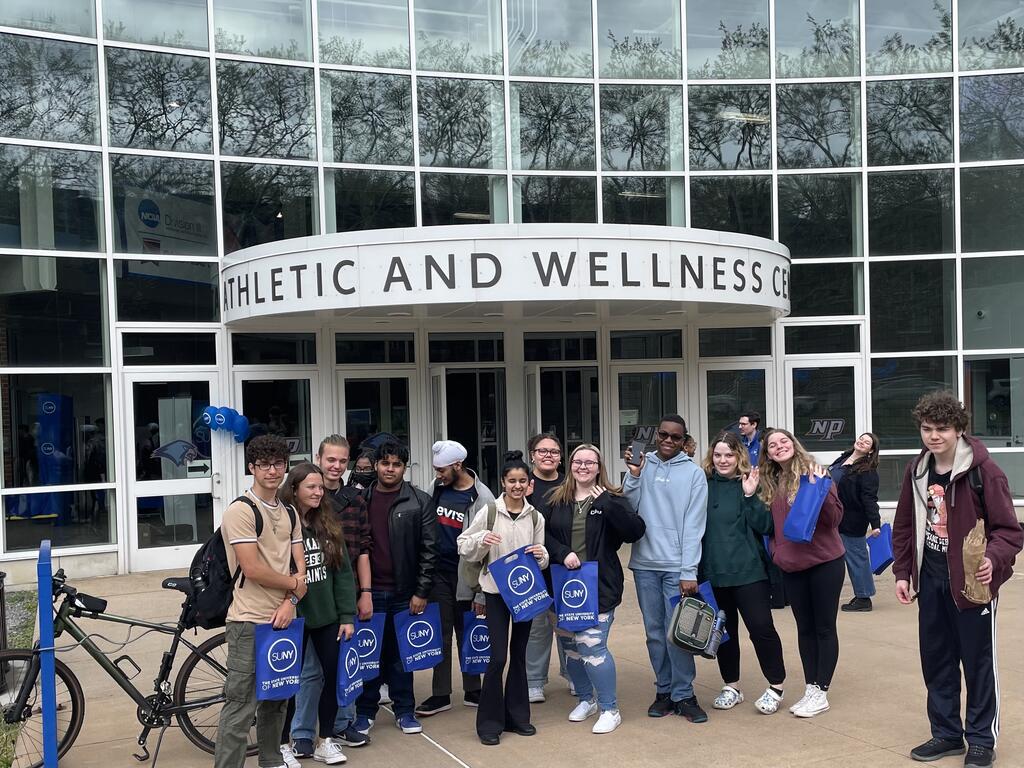 On Thursday, April 27 the PJHS Guidance Department facilitated a trip for 40 PJHS juniors and sophomores to attend a SUNY College Fair held at SUNY New Paltz. After the college fair and a picnic lunch, our group was treated to a fantastic campus tour by PJHS alumna Chloe Lane, and her friend Sam Strong, who are current students at SUNY New Paltz.